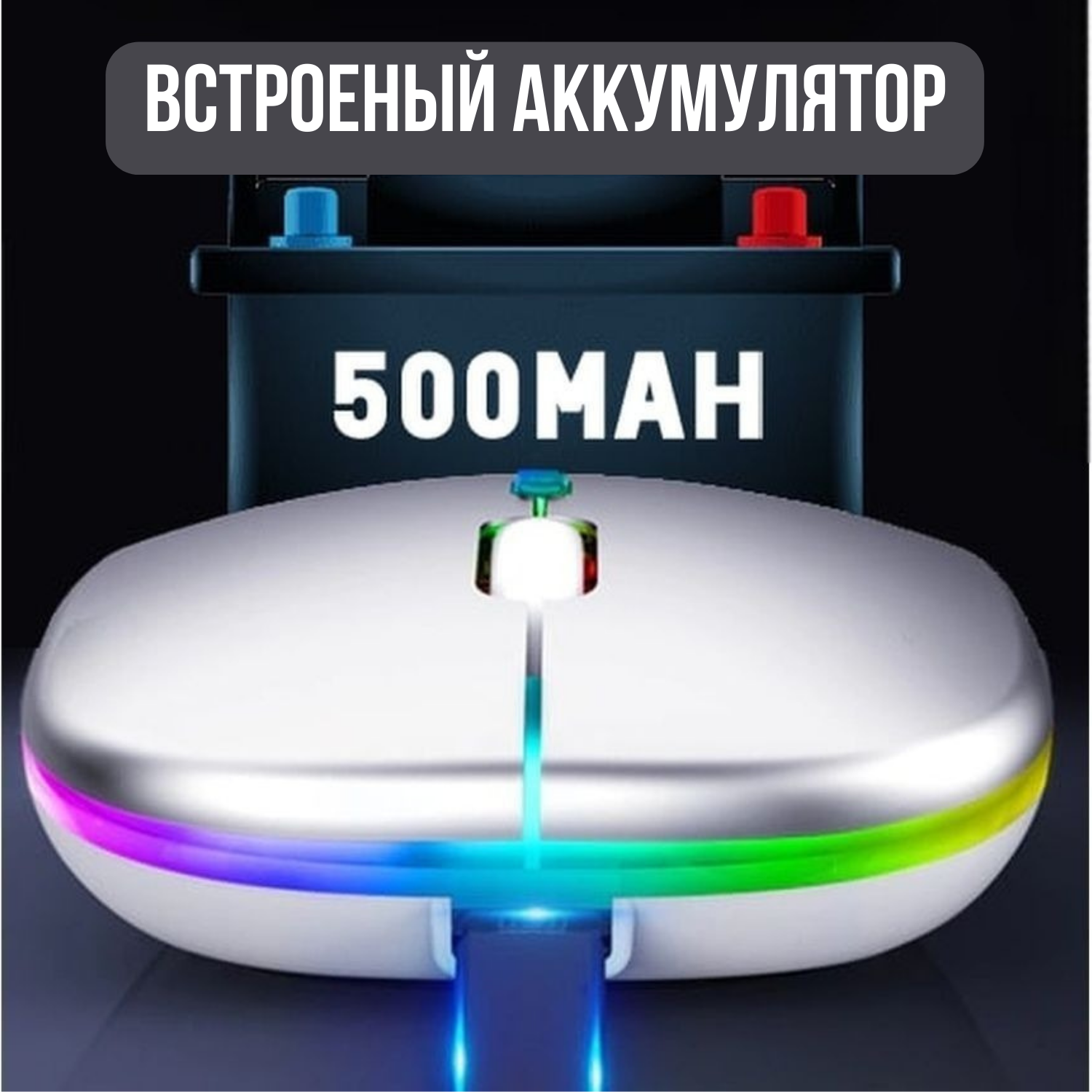 Беспроводная мышка для компьютера со встроенным аккумулятором/ Бесшумная блютуз компьютерная мышь с подсветкой RGB/ Bluetooth/ WiFi 2.4 гц