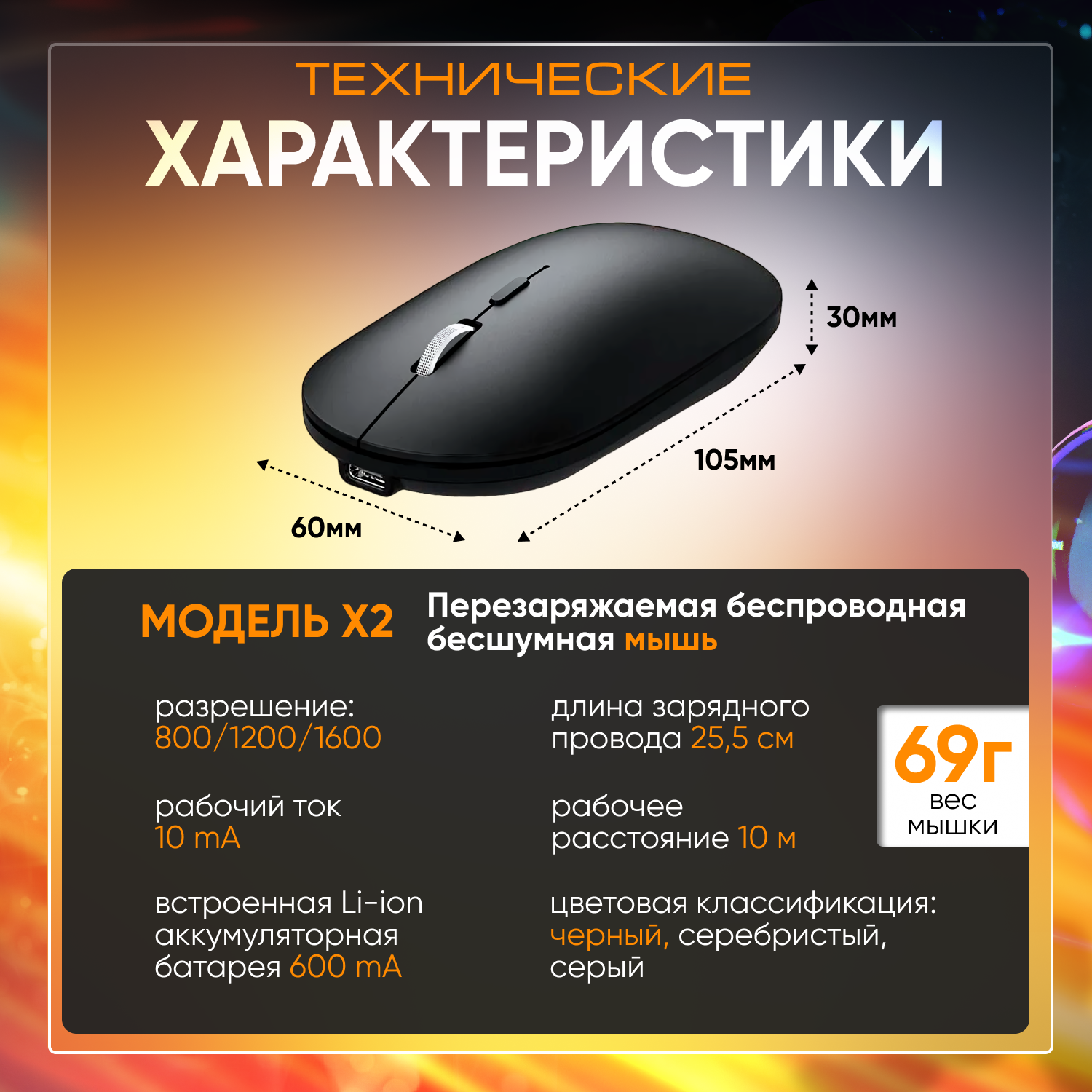 Мышь компьютерная беспроводная, мини-мышь Bluetooth бесшумная с зарядкой, серая интересное: