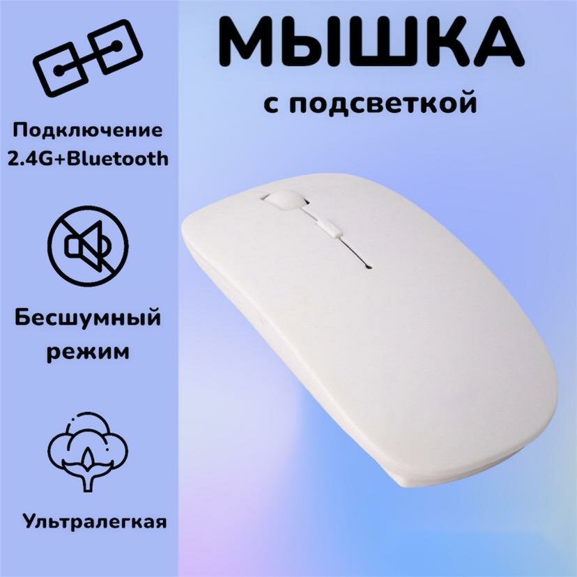 Мышь беспроводная, 2 вида подключения bluetooth+2,4G, Белая матовая WOGOW интересное: