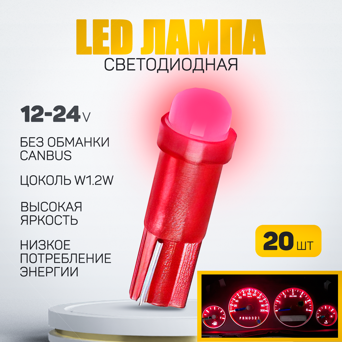 Ниже Вы можете прочитать отзывы на Светодиодная лампа для подсветки панели приборов T5, 12 V, 20 штук, красный цвет, ознакомится с подробными характеристиками, посмотреть интересные обзоры и фотографии на Светодиодная лампа для подсветки панели приборов T5, 12 V, 20 штук, красный цвет.