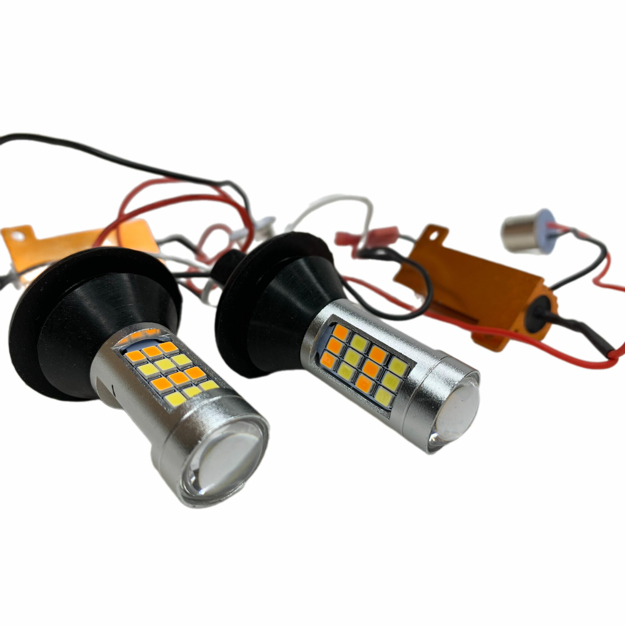 Светодиодные лампы с ДХО в поворотники 2 в 1, цоколь 1156/PY21W BAU15S 2835-42LED интересное: