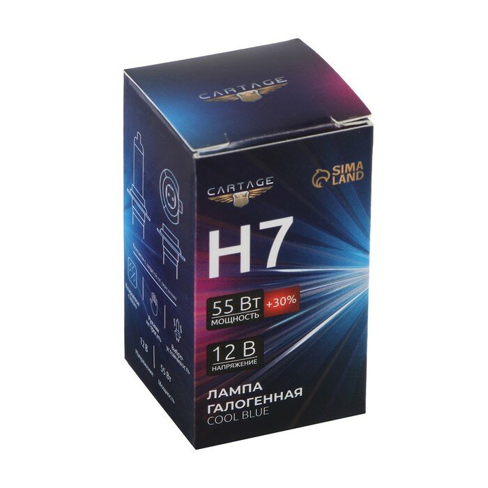 Галогенная лампа Cartage Cool Blue H7, 12 В, 55 Вт +30% интересное: