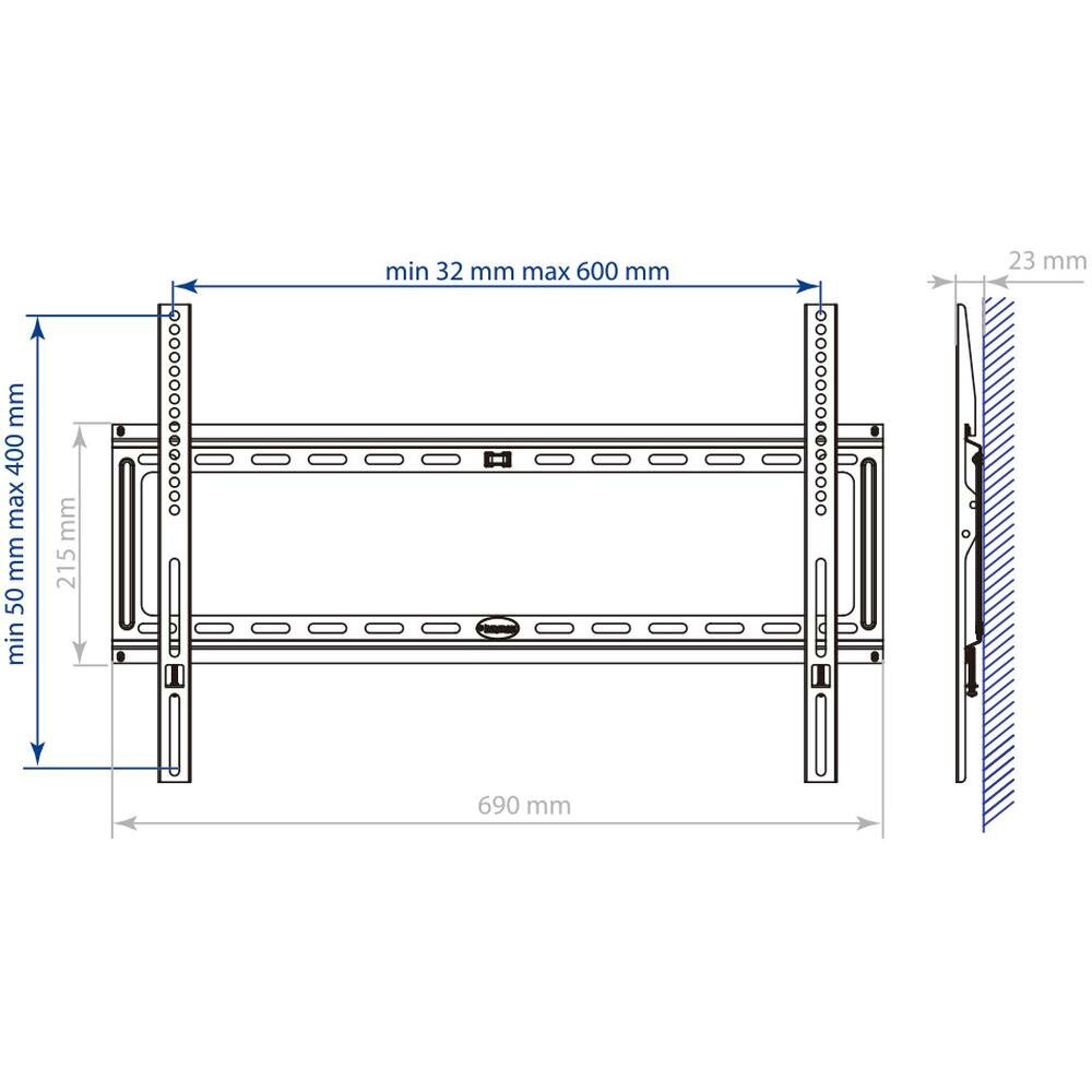 Кронштейны для техники Kromax Кронштейн настенный Kromax IDEAL-1 32-90" (фиксированный, вылет 23 мм, до 55 кг, черный)