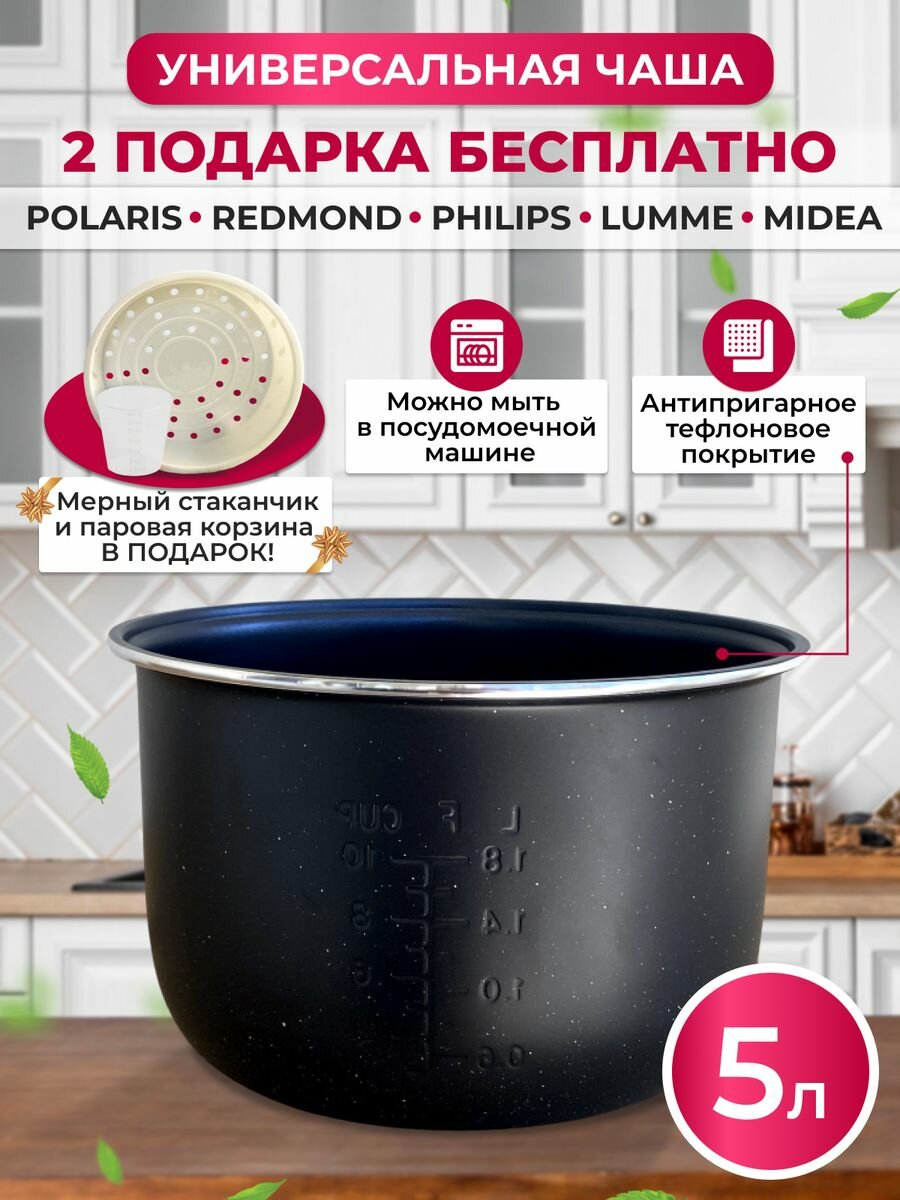 Чаша для мультиварки redmond 5 л универсальная черный гранит