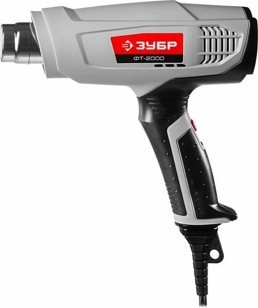 Фен технический (строительный), ЗУБР ФТ-2000, насадки 3 шт, 2 режима: 350град/ 350л/мин, 650град/ 550л/мин, коробка, 2000Вт