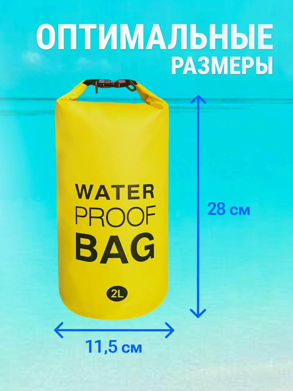 Купить Гермомешок водонепроницаемый, гермосумка 2 литра, герморюкзак желтый, Dry bag, гермочехол