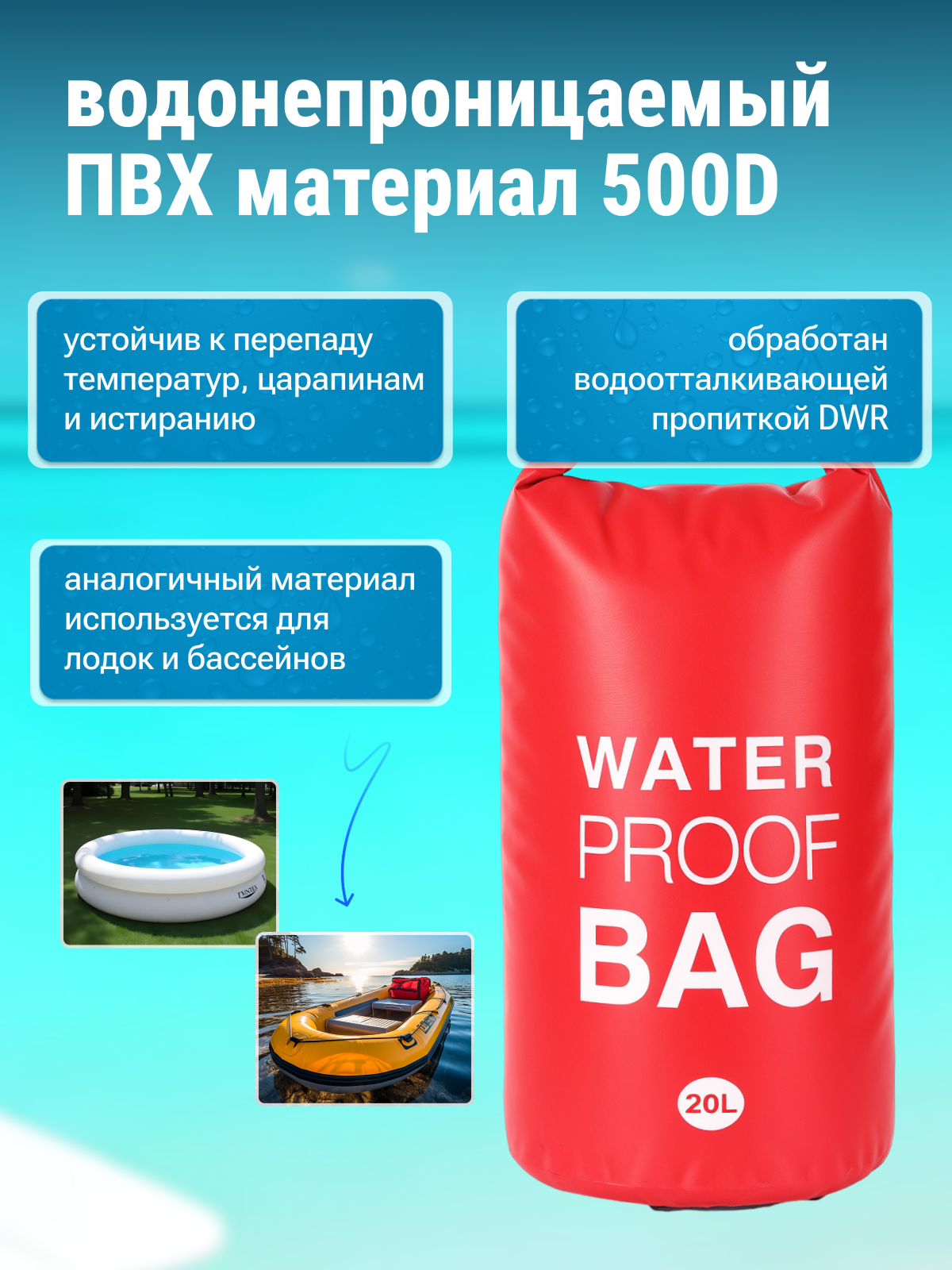 СохранитьГермомешок водонепроницаемый, гермосумка водоотталкивающая 20 литров, герморюкзак красный, Dry bag, гермочехол интересное:
