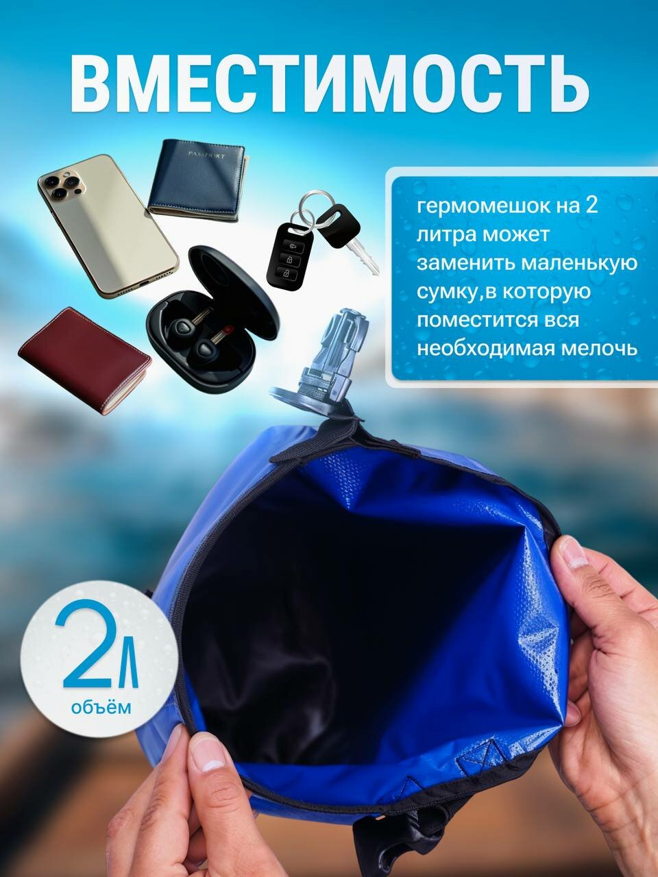 Гермомешок водонепроницаемый, гермосумка 2 литра, герморюкзак темно-синий, Dry bag, гермочехол