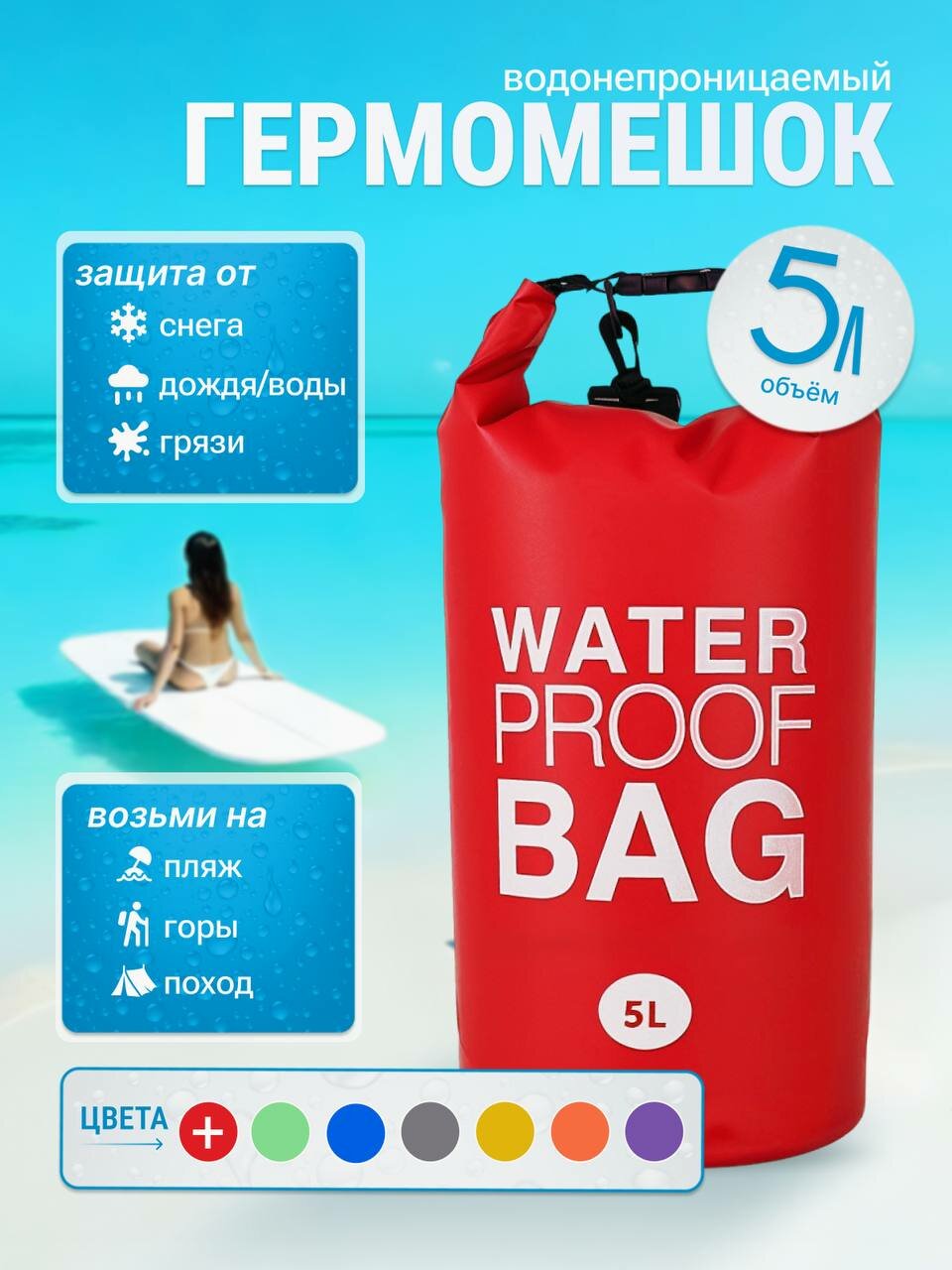 Купить Гермомешок водонепроницаемый, гермосумка водоотталкивающая 5 литра, герморюкзак красный, Dry bag, гермочехол