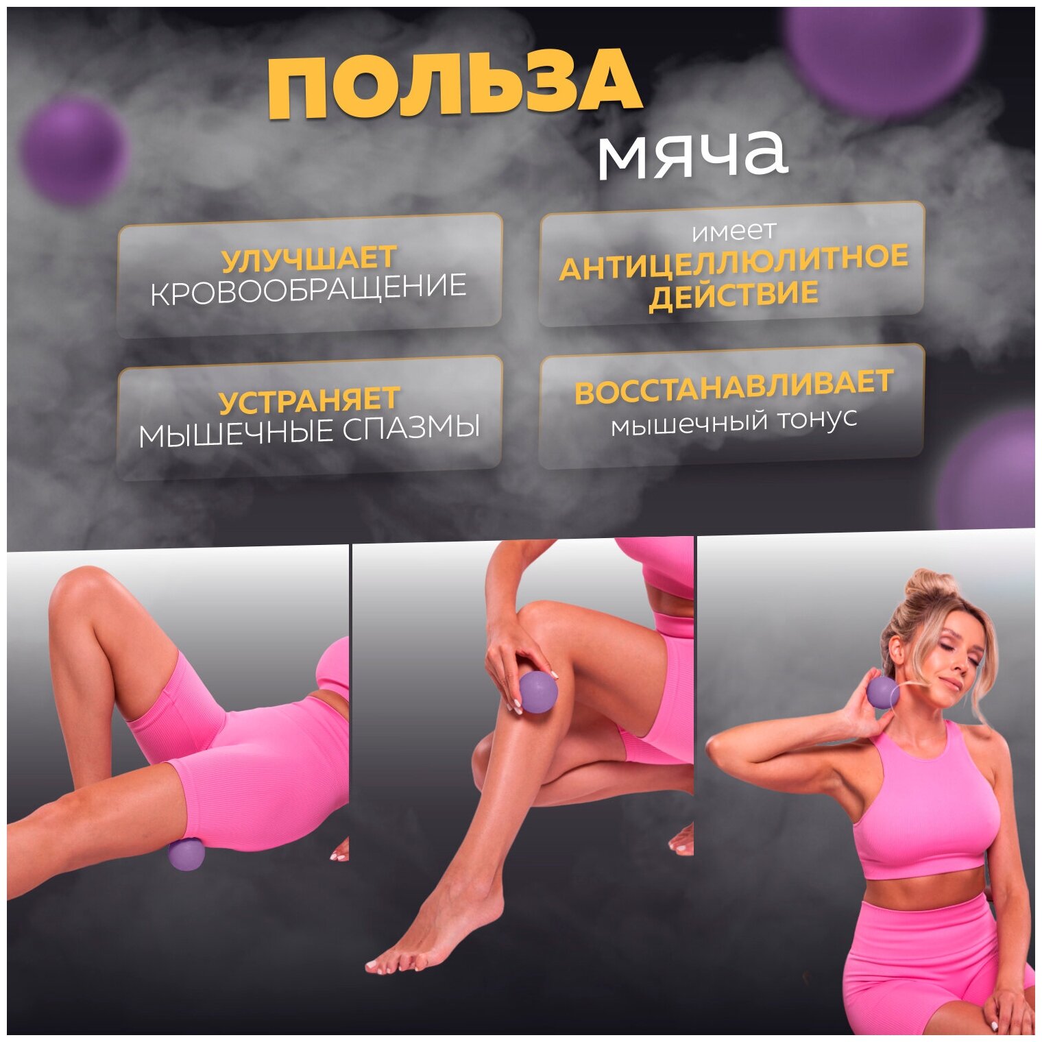 Мяч массажный для МФР, фитнеса и йоги Arushanoff, фиолетовый (M1) интересное: