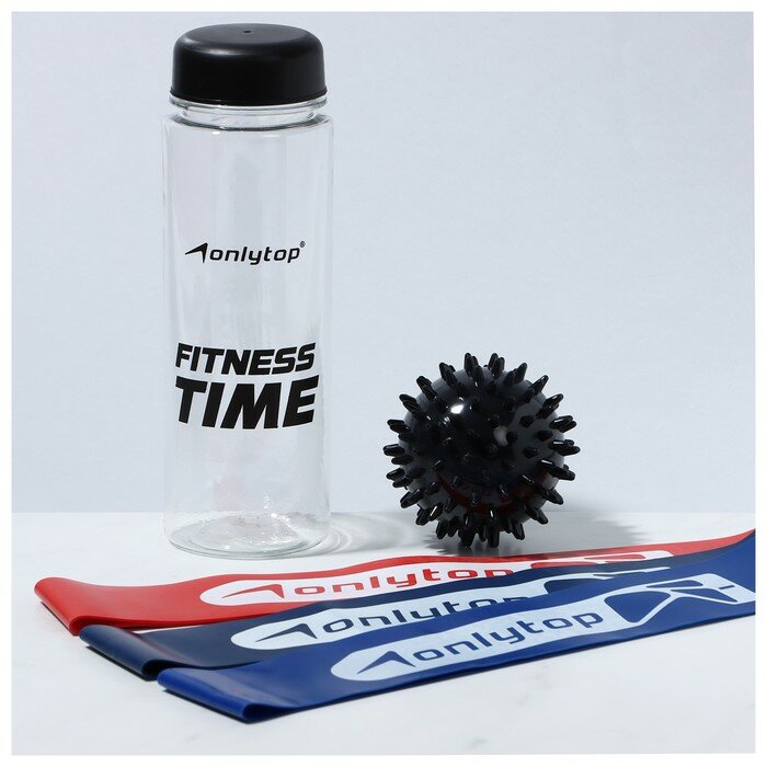 Купить Набор для фитнеса ONLYTOP «Геометрия»: 3 фитнес-резинки, бутылка для воды, массажный мяч