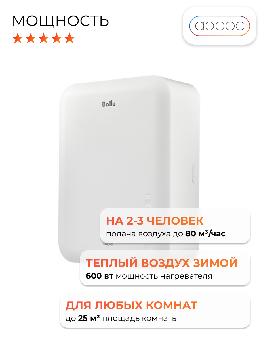 Очиститель воздуха приточный Ballu ONEAIR ASP-80 + подарок фильтр F5 интересное: