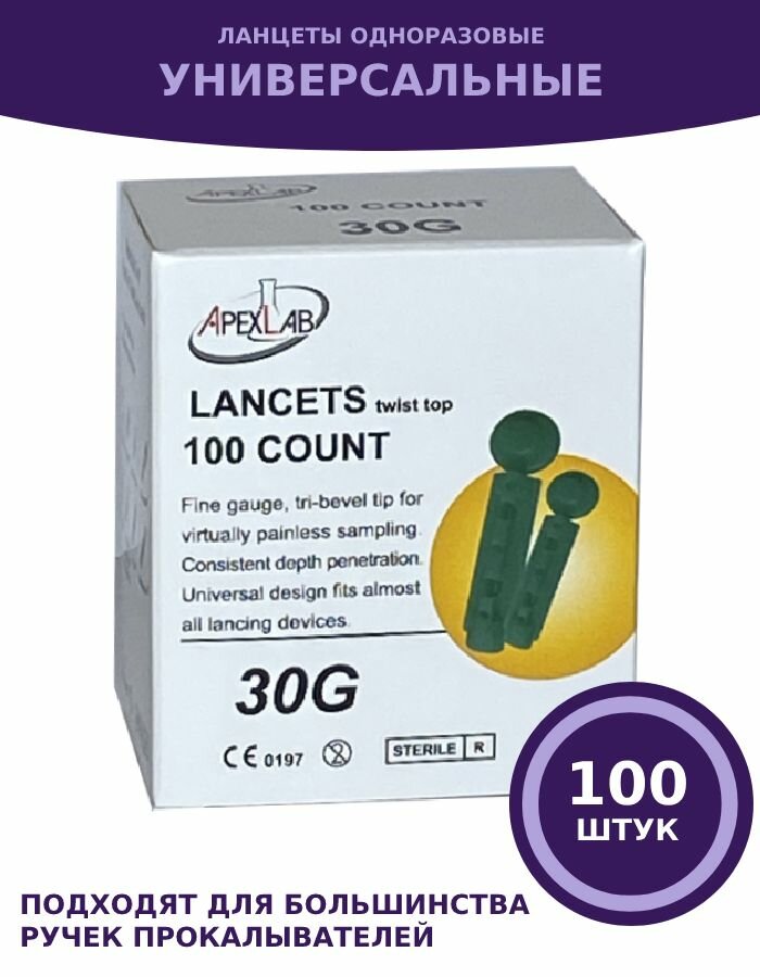 Универсальные ланцеты 30G APEXLAB для глюкометра, 100 шт. интересное: