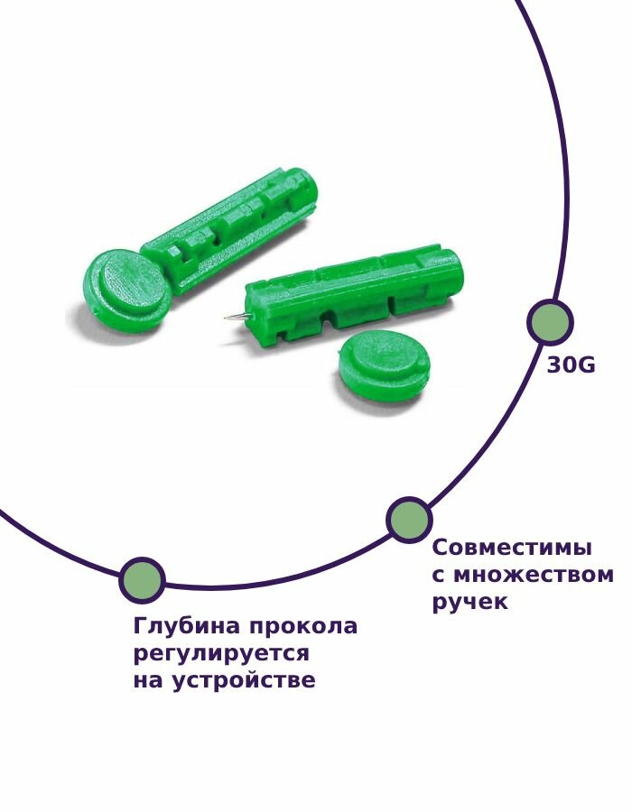 | Комплектация | 100 шт. универсальных ланцетов для глюкометра |