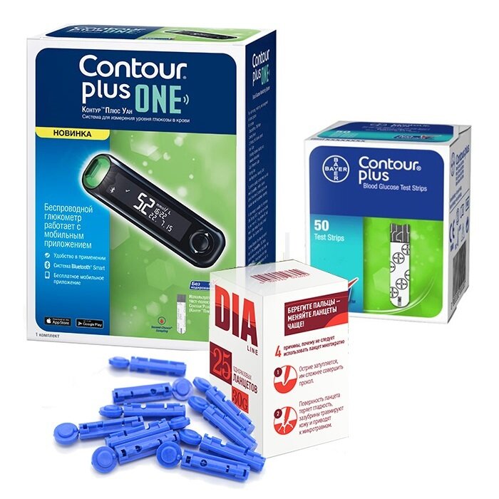 Глюкометр Контур Плюс Уан (Contour Plus One) с покалывателем + тест-полоски Контур Плюс № 50 + ланцеты №25 интересное: