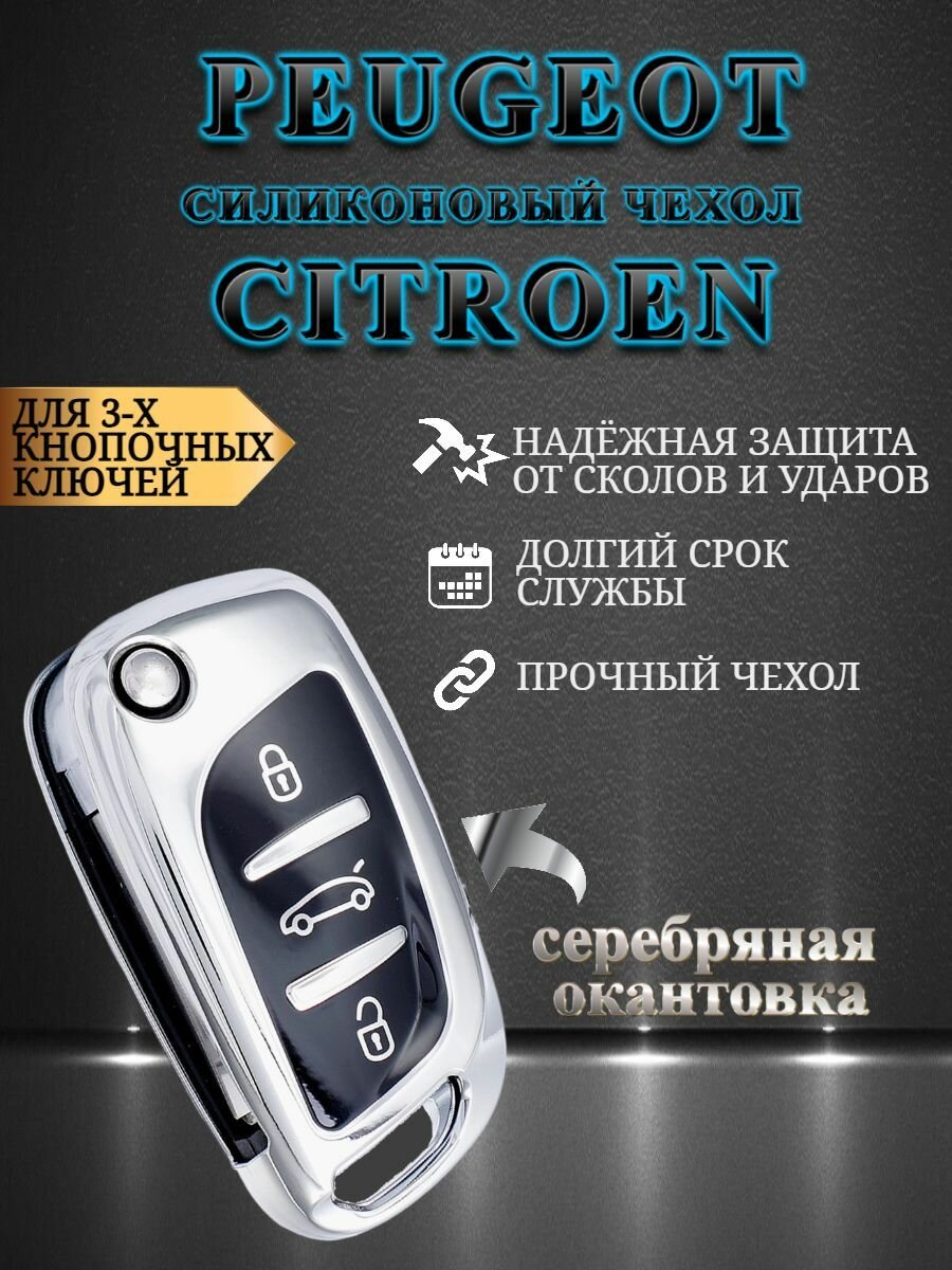Купить Чехол для выкидного ключа PEUGEOT / CITROEN с 3 кнопками серебристый