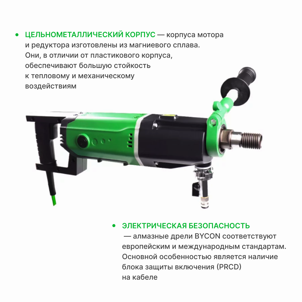 Дрель алмазная BYCON DMP-162D 2.2 кВт Байкон для алмазного бурения, максимальный диаметр 162 мм, сухое/мокрое сверление интересное: