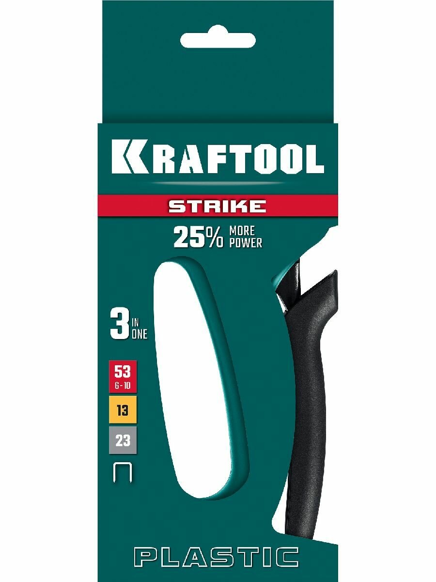 KRAFTOOL STRIKE 3-в-1: 53 (A/10/JT21) 23GA(6-10мм), 13, 23, пластиковый мощный степлер (3189)