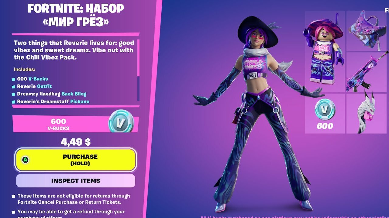 Ключ активации Фортнайт Набор «Мир грёз» +600 В-Баксы Chill Vibez Pack +600 V-Bucks интересное: