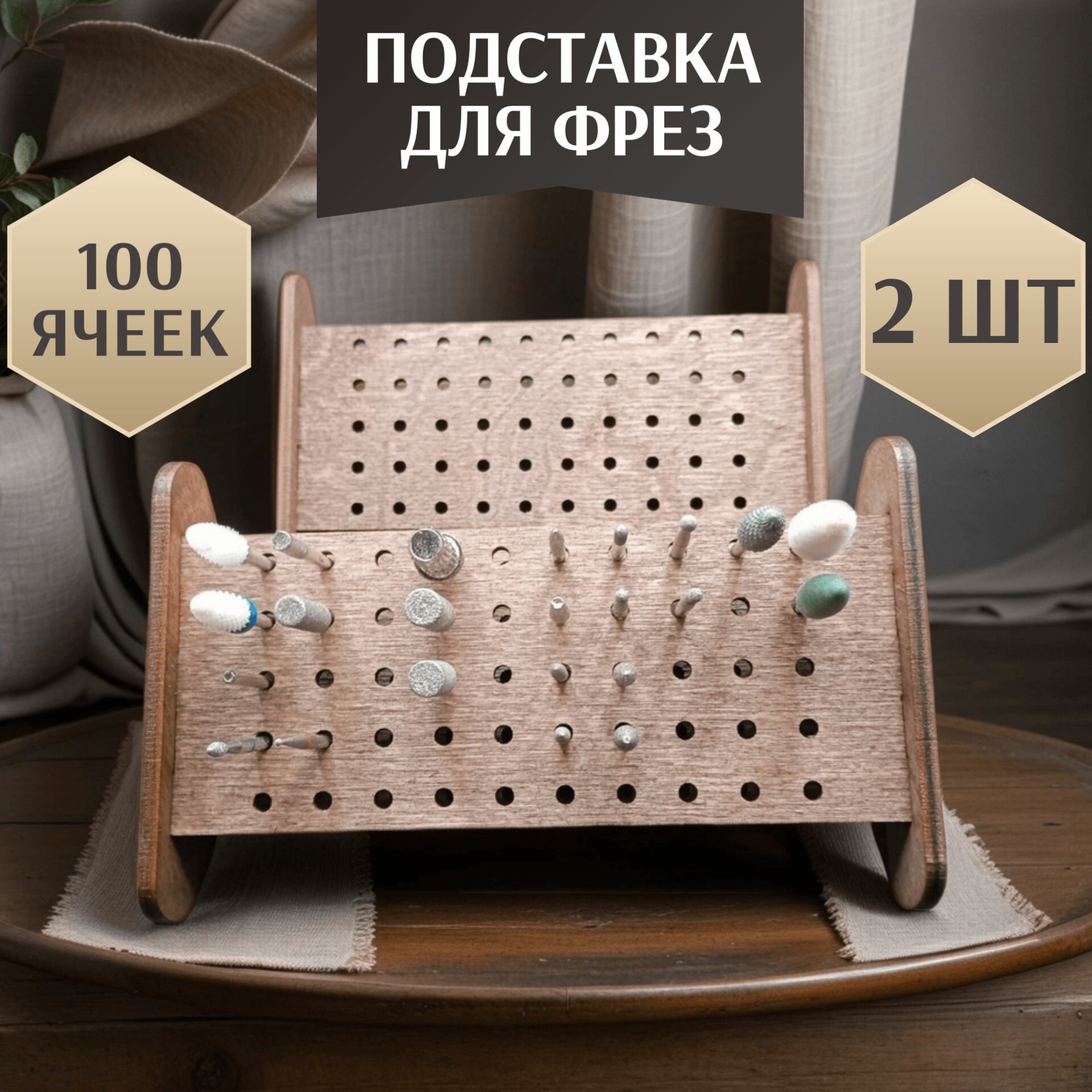 Купить Подставка для фрез в стиле Лофт, 2 шт, 100 отделений, диаметр 2,5 мм