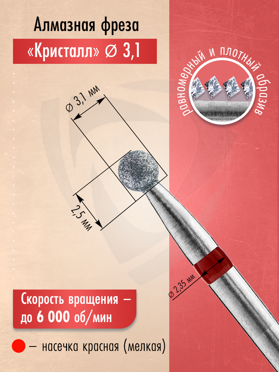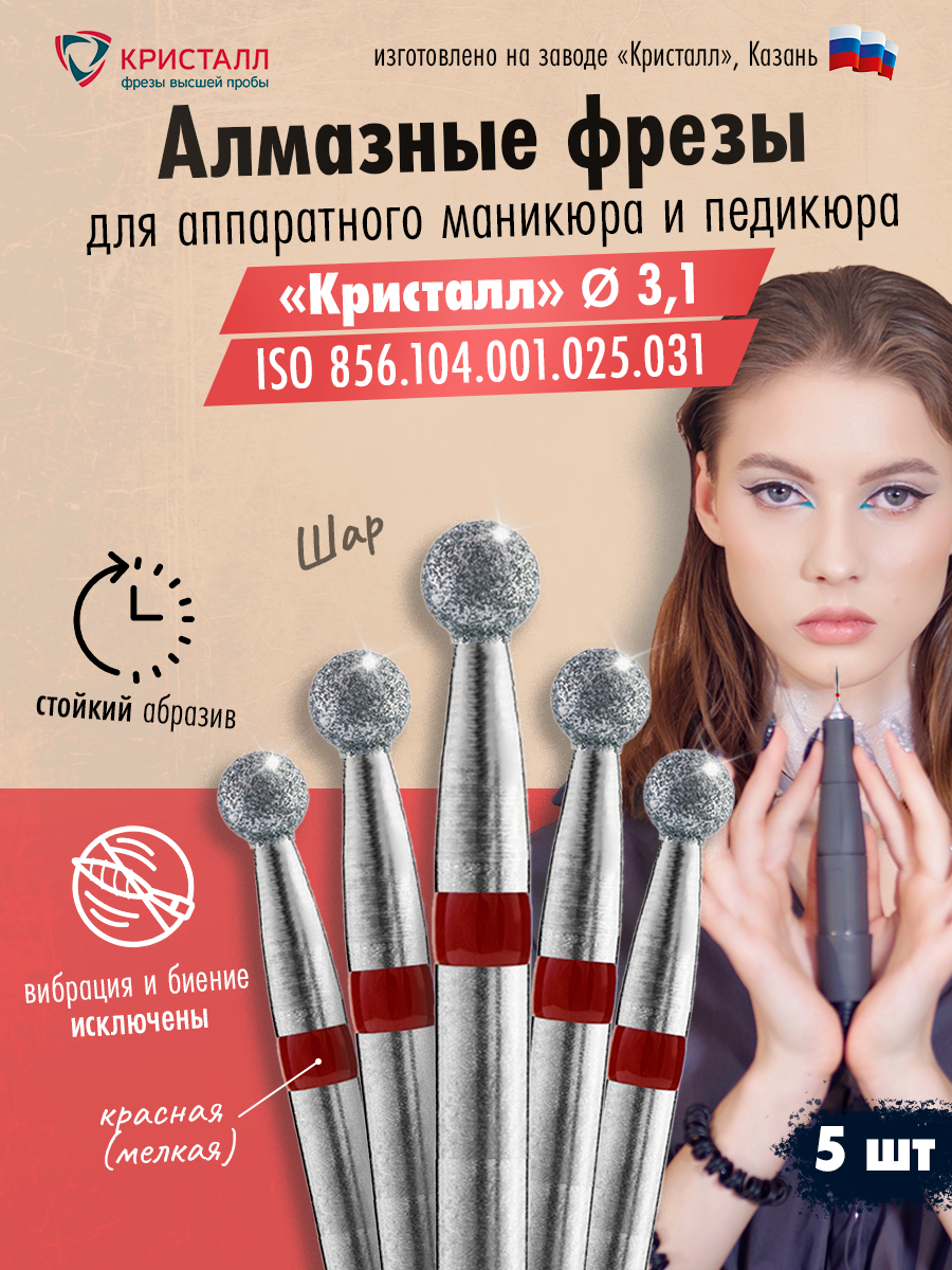 Кристалл, Алмазная фреза (шар), D3,1, L025, мягкая, 856.104.001.025.031, 5 шт интересное: