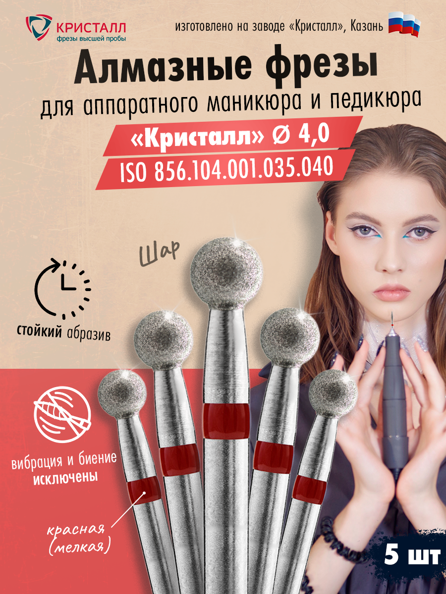 Кристалл, Алмазная фреза (шар), D4, L035, мягкая, 856.104.001.035.040, 5 шт интересное: