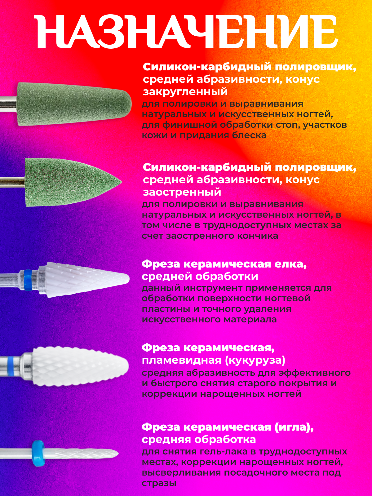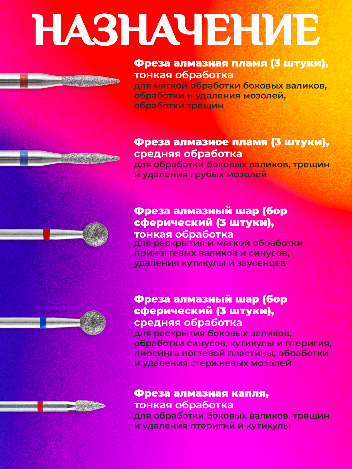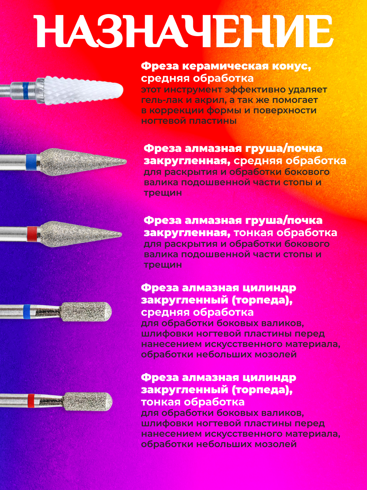 Фрезы для маникюра педикюра снятия алмазные керамика набор 23+2 интересное: