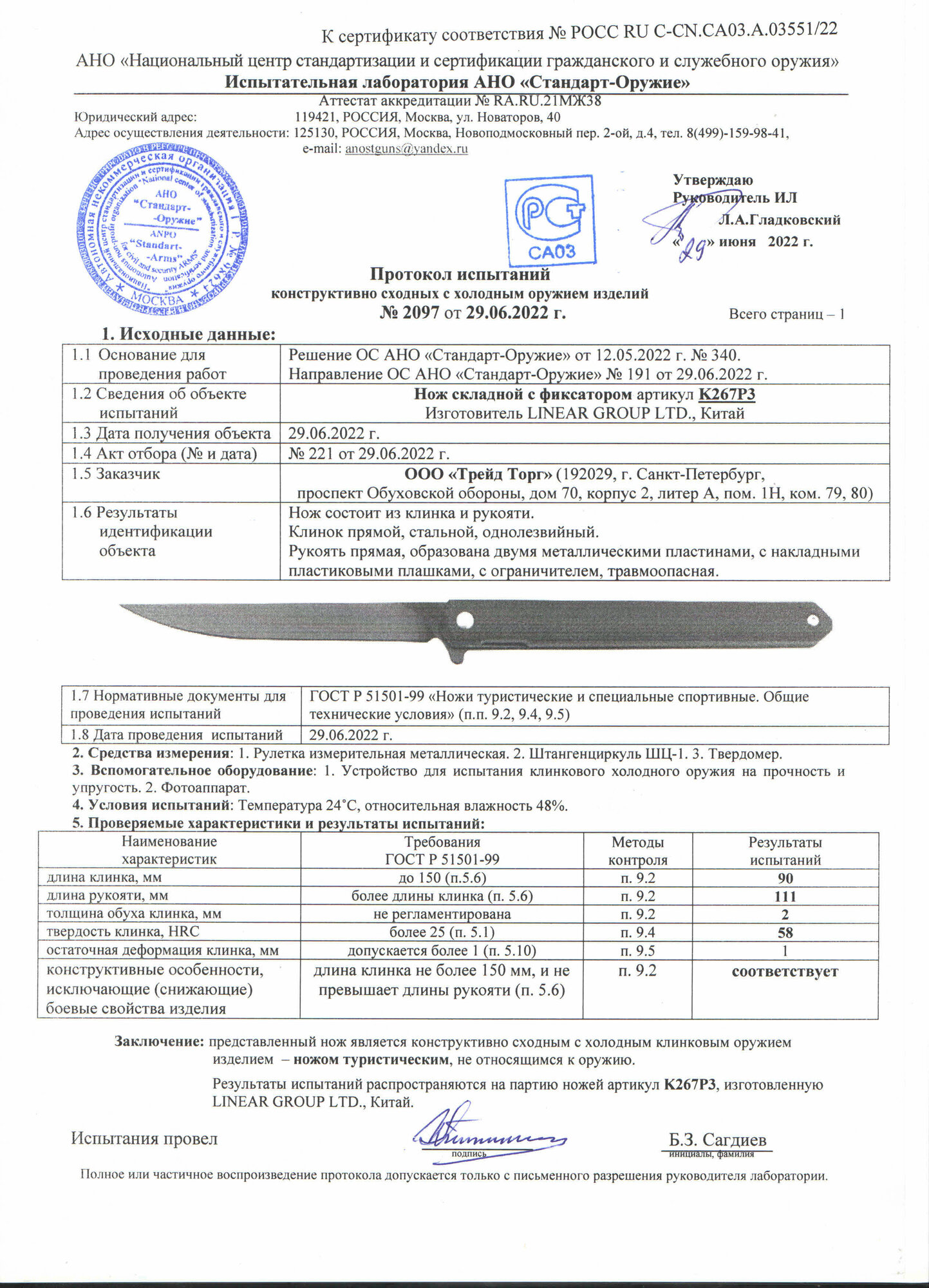 | Характеристики ножа | |