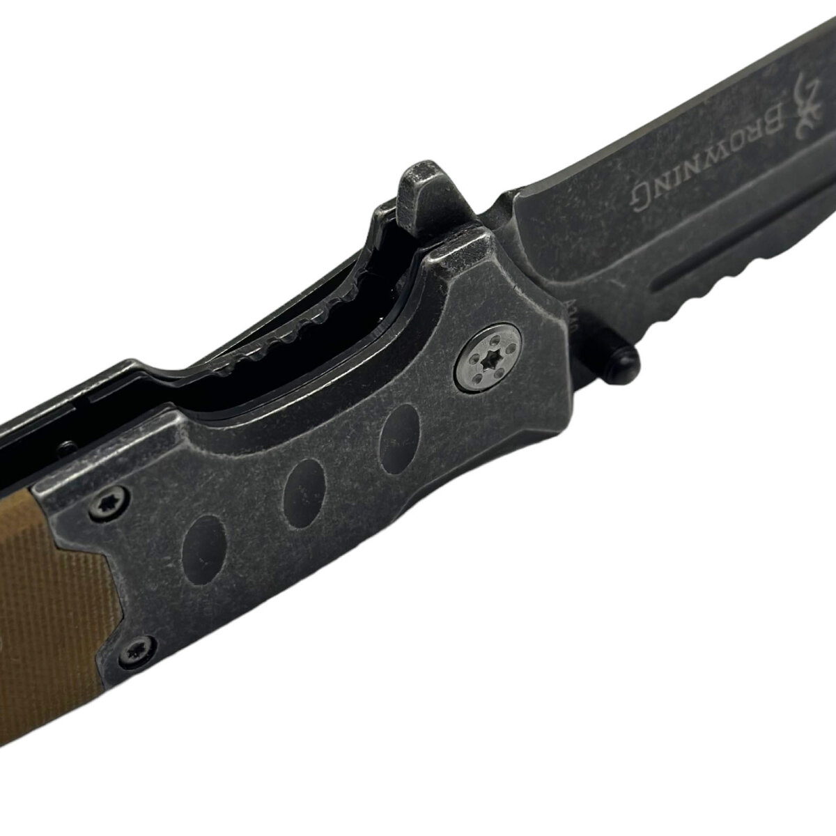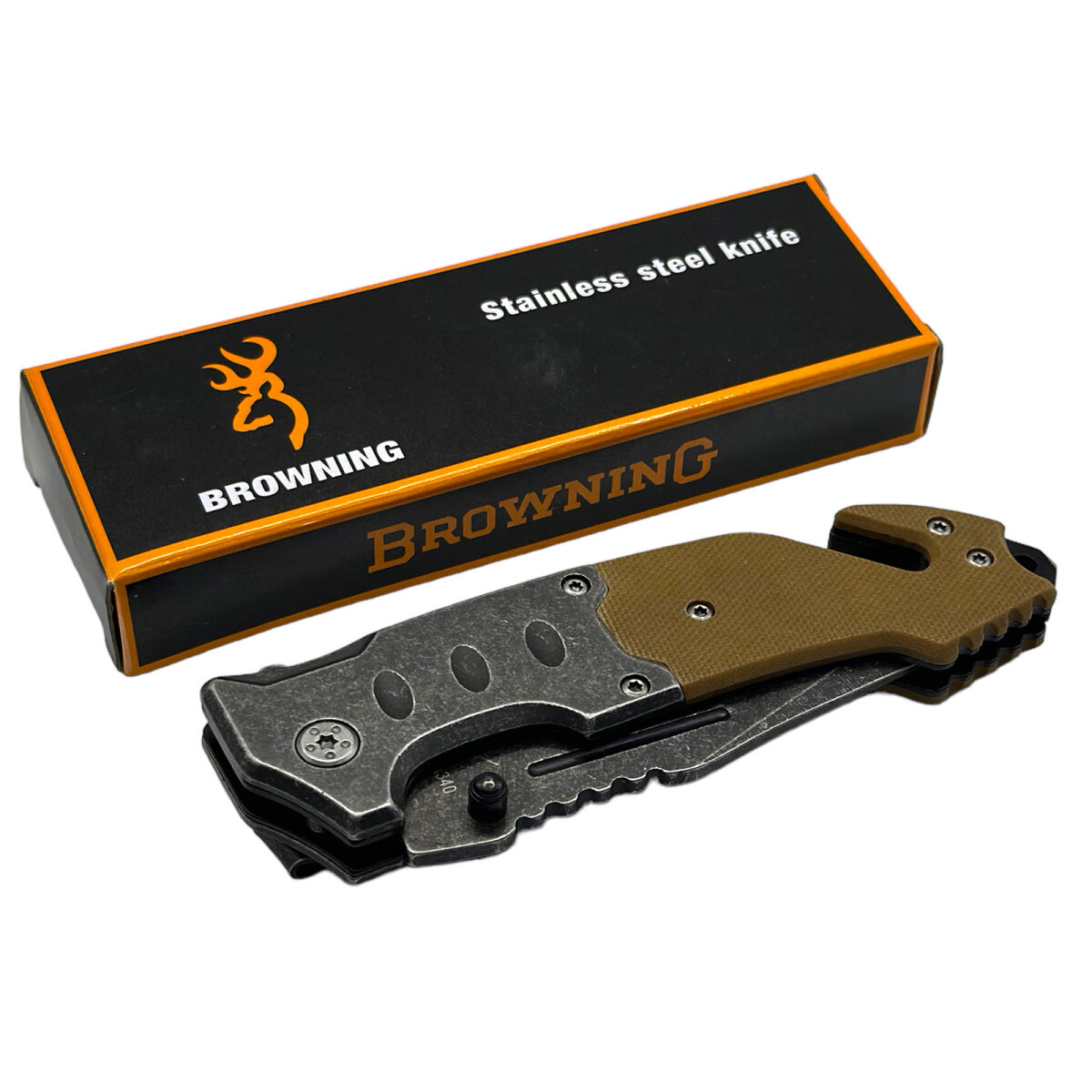 Складной нож Browning A340 со стропорезом и стеклобоем интересное: