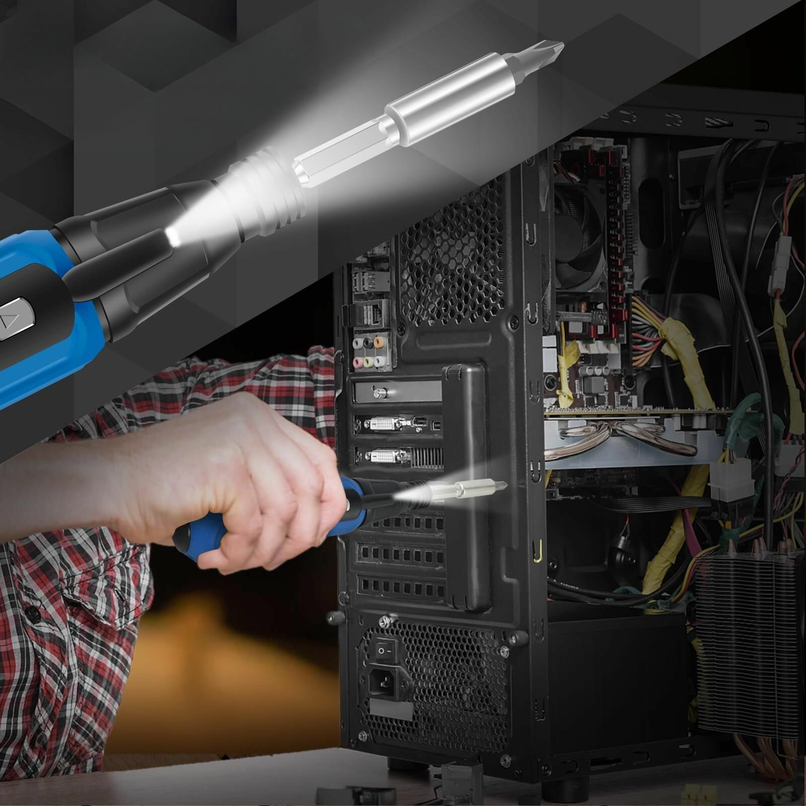Аккумуляторная отвертка с фонариком и набором бит. интересное: