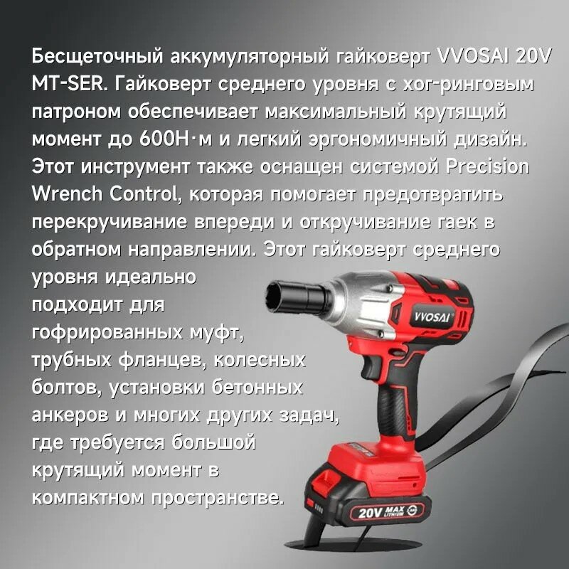 Гайковерт аккумуляторный с кейсом WOSAI WS-L5 600 Н*м, 20V, 4.0AH 1 аккумулятор интересное: