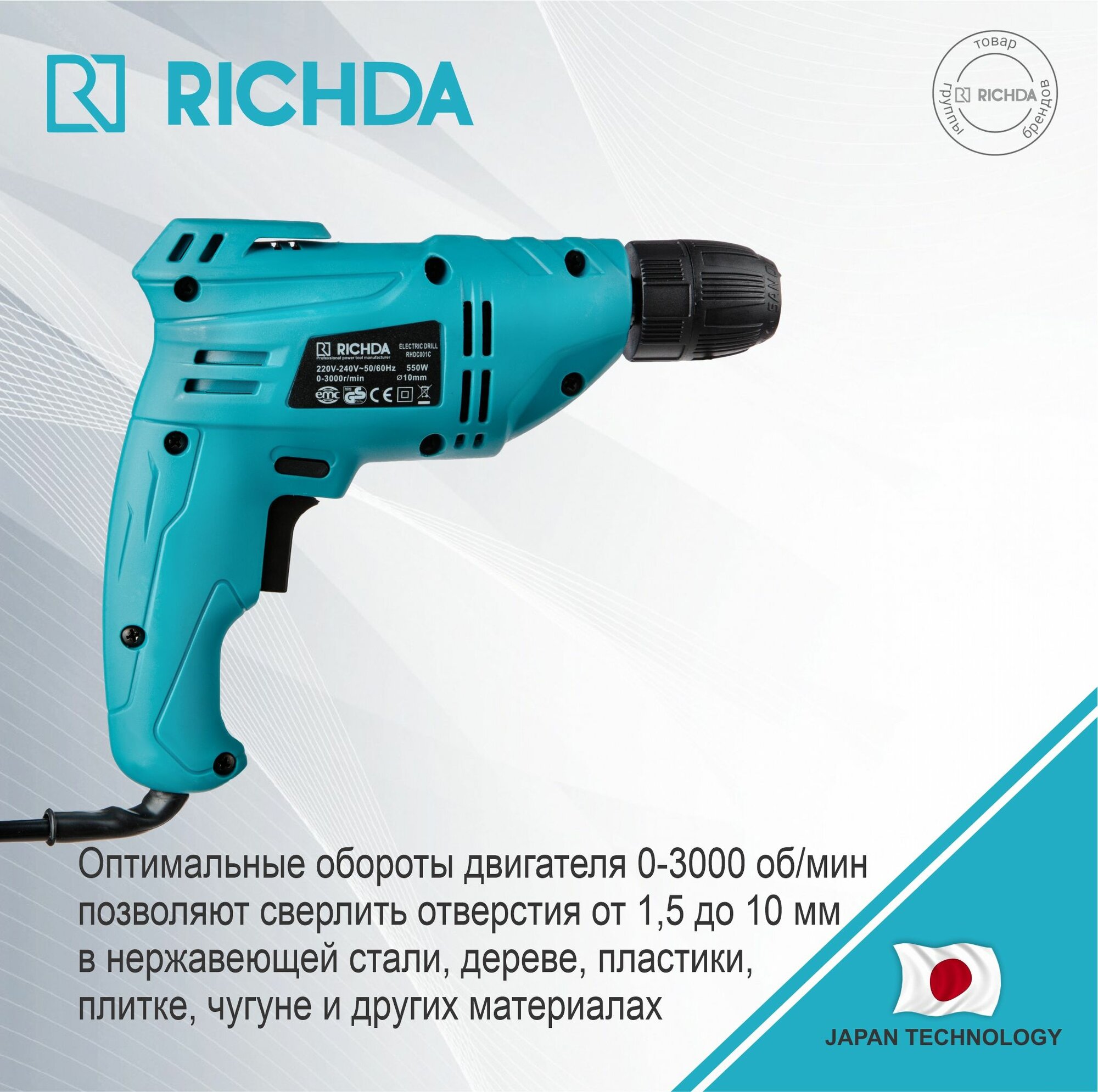 Дрель сетевая RICHDA RHDC001C 550Вт интересное: