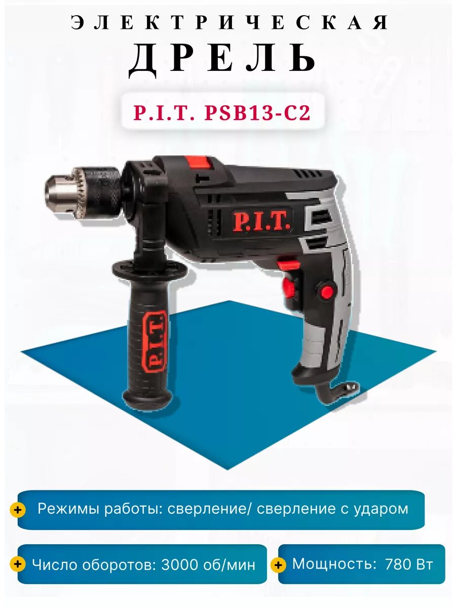 Дрель ударная PSB13-C2 (780Вт, ключевой патрон 13мм, 0-3000 об/мин) P.I.T.