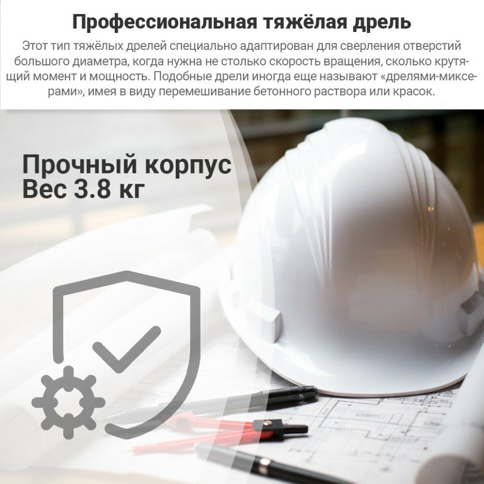 | Особенности конструкции | дополнительная рукоятка / ограничитель глубины сверления / предохранительная муфта |