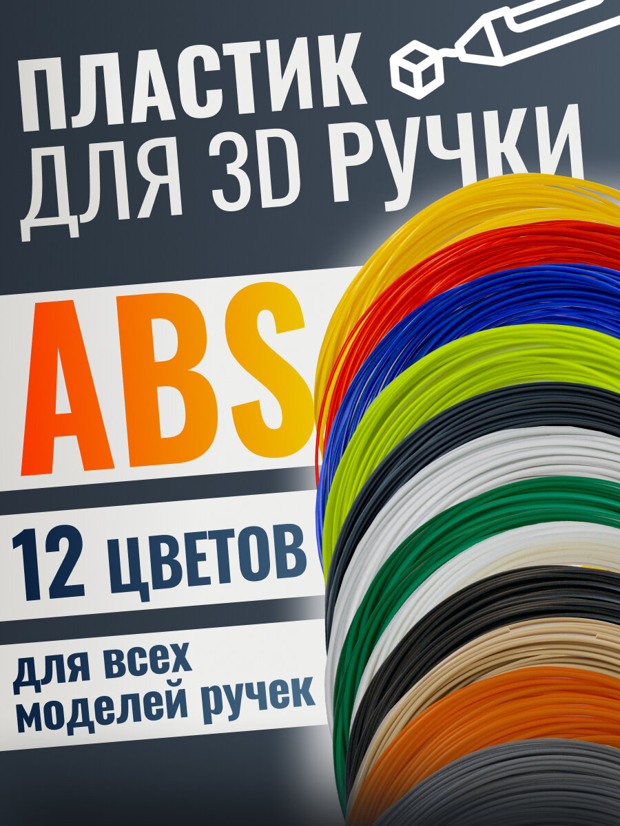 Пластик для 3D ручки (для 3д ручки), набор 12 цветов по 10 метров , картриджи, нить интересное: