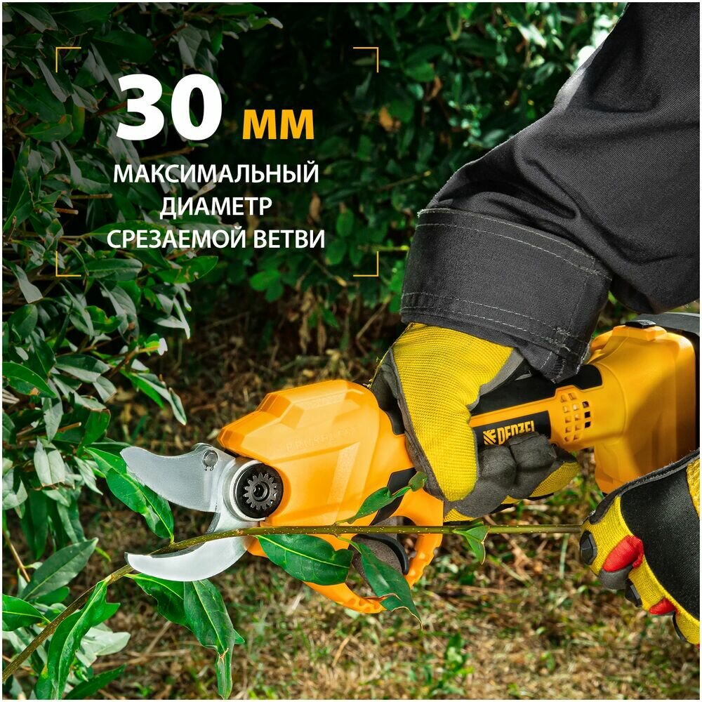 Аккумуляторный секатор Denzel CP-30, 18В Li-Ion 59435 интересное: