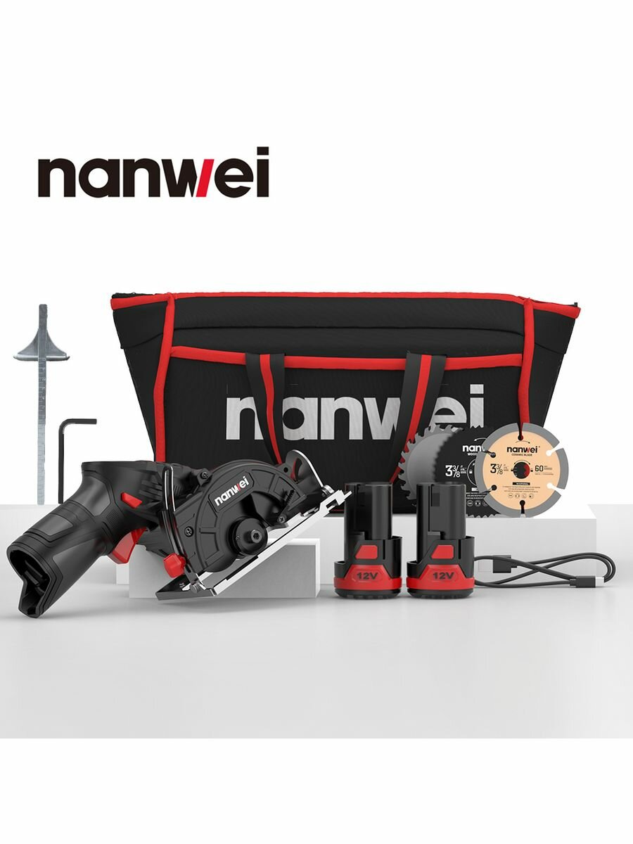 Купить NANWEI 12V Электрическая циркулярная пила аккумуляторная 2.0ah Type-C