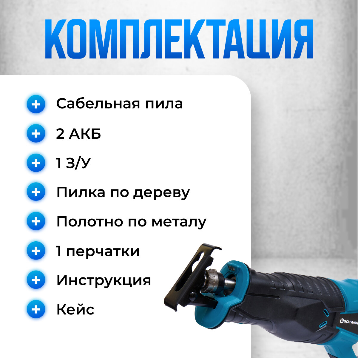 Сабельная аккумуляторная пила Schwarz , садовая, профессиональная, кусторез, сучкорез, 24В
