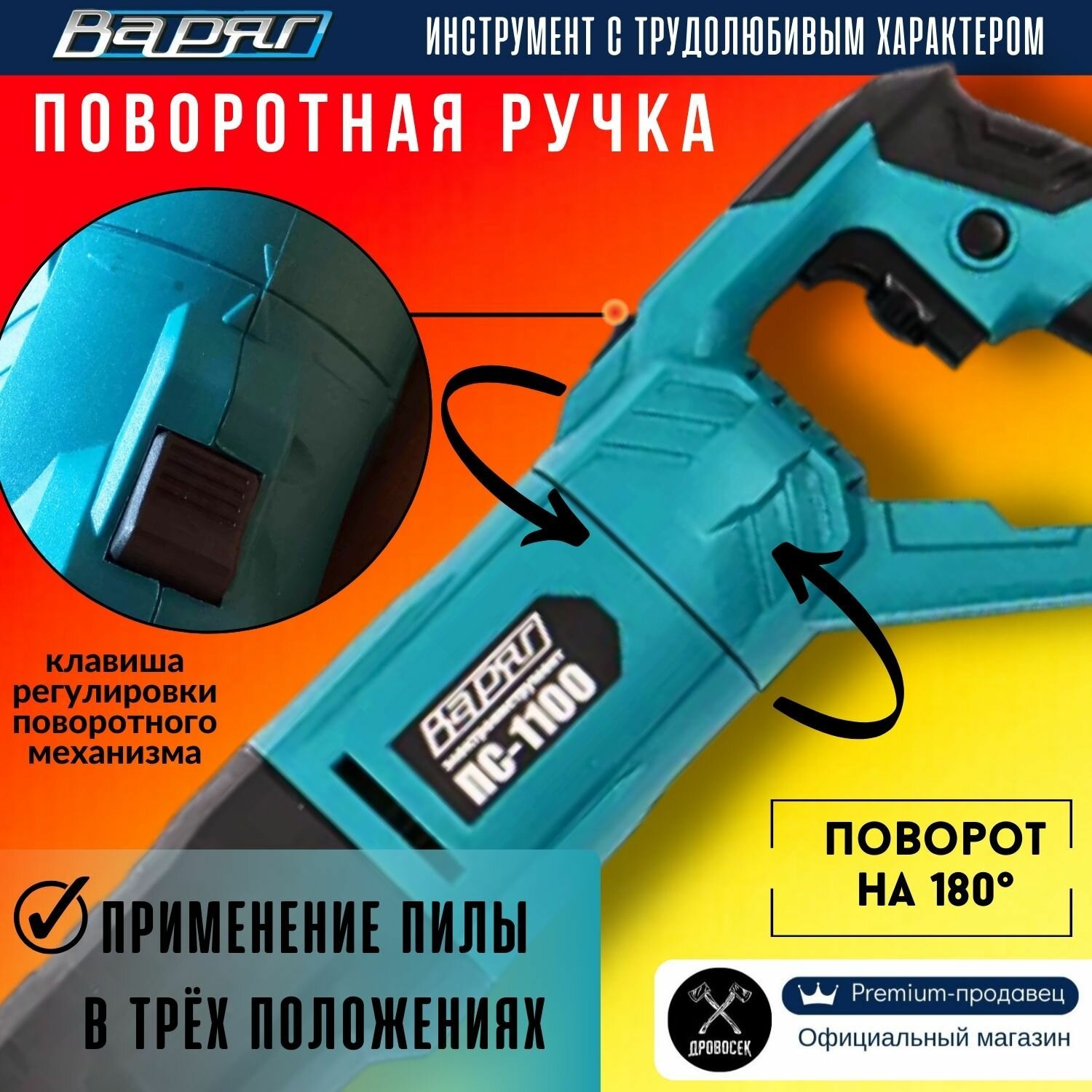 Пила сабельная Варяг ПС-1100 электрическая (1100Вт, 0-2800об/мин, быстрозажим., поворотная, с подсветкой) интересное: