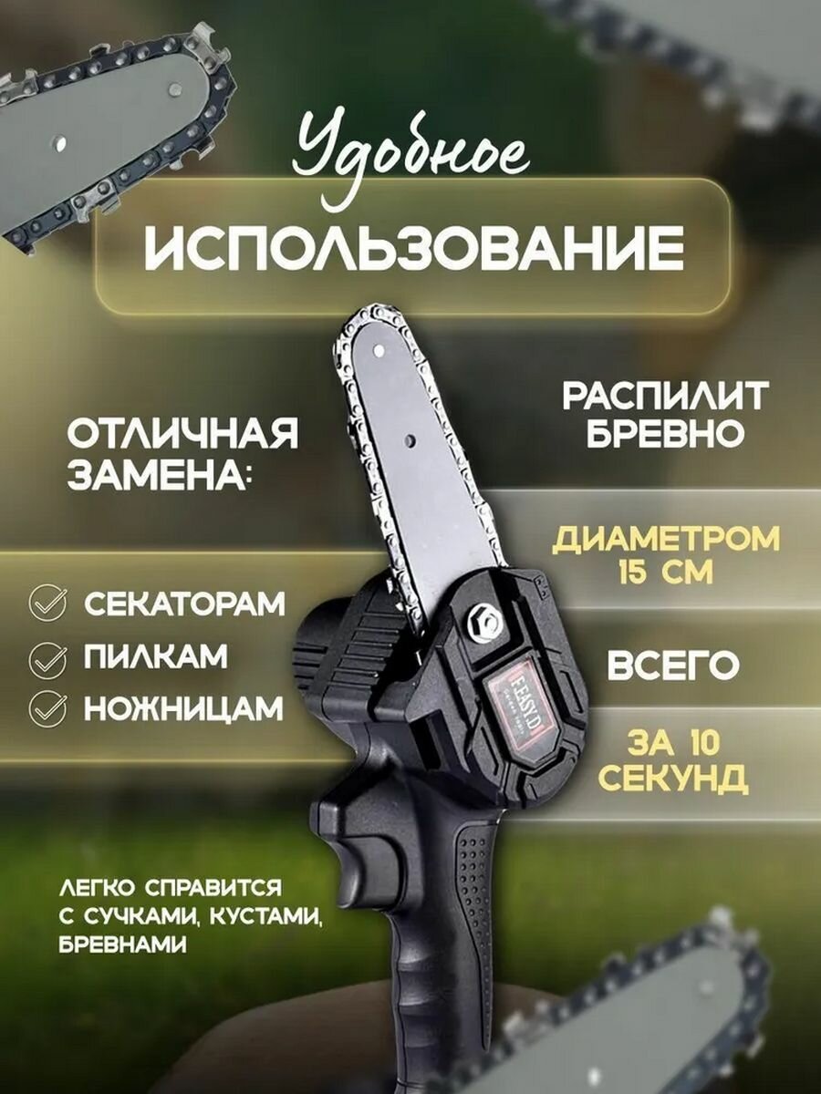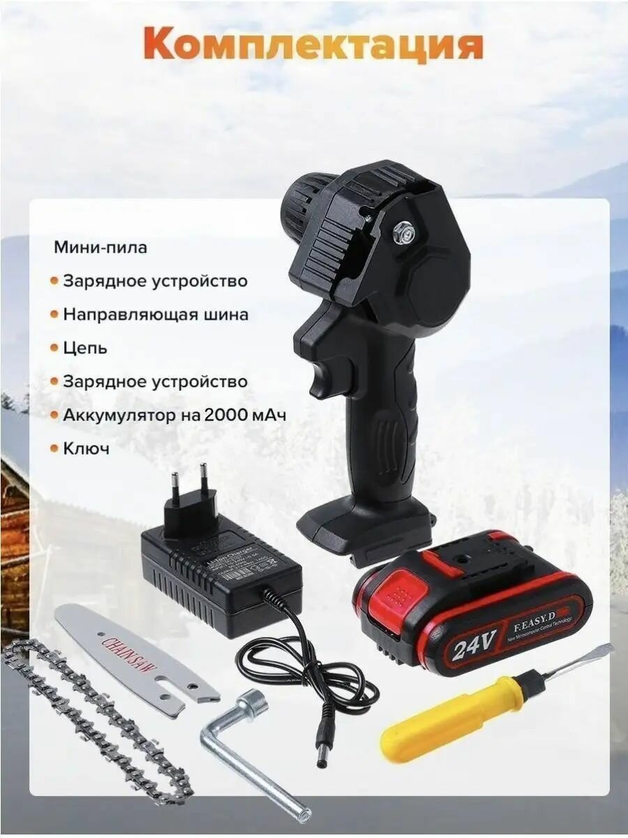 Пила цепная аккумуляторная, мини бензопила.24 В интересное: