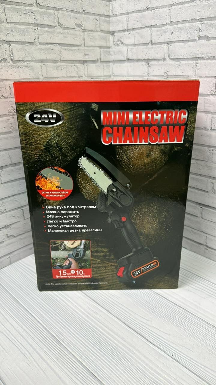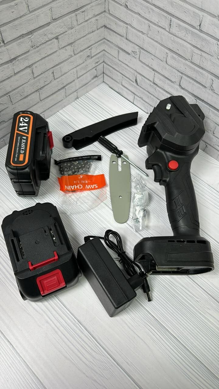 Мини электрическая цепная пила, портативная беспроводная обрезная пила 24V, 1 аккумулятор интересное: