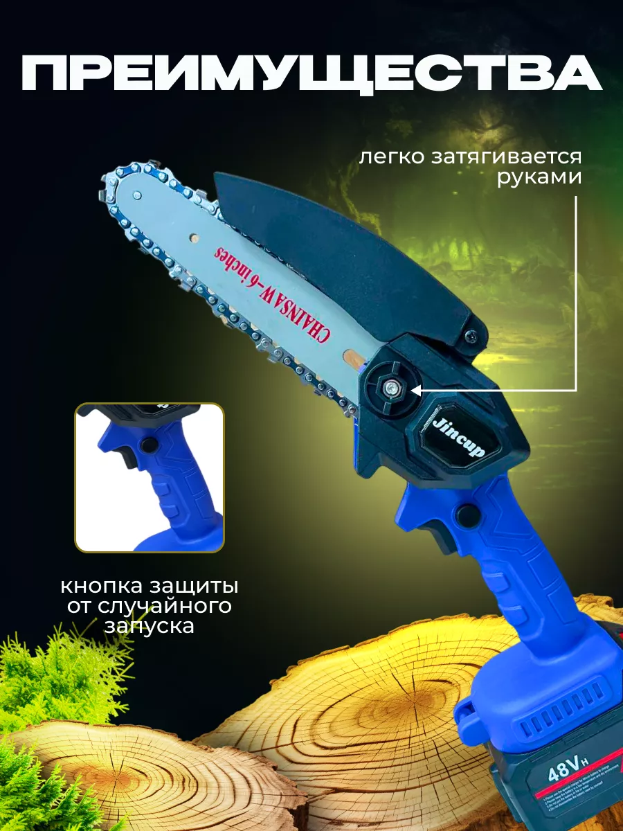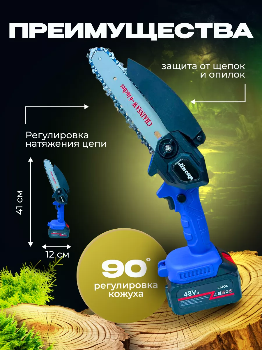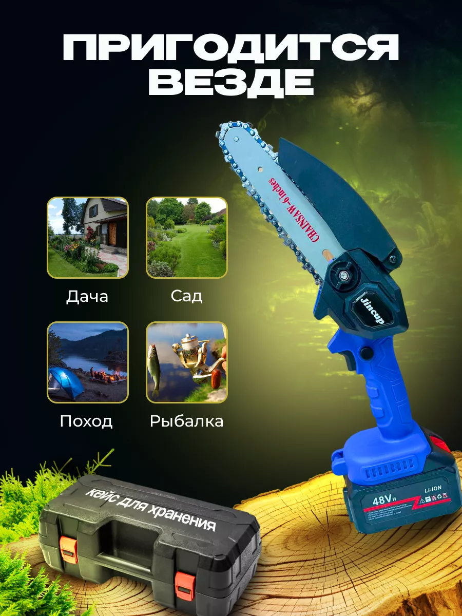 Садовая аккумуляторная цепная мини пила JINCUP, сучкорез, Цвет Синий интересное: