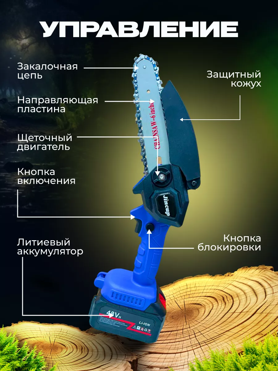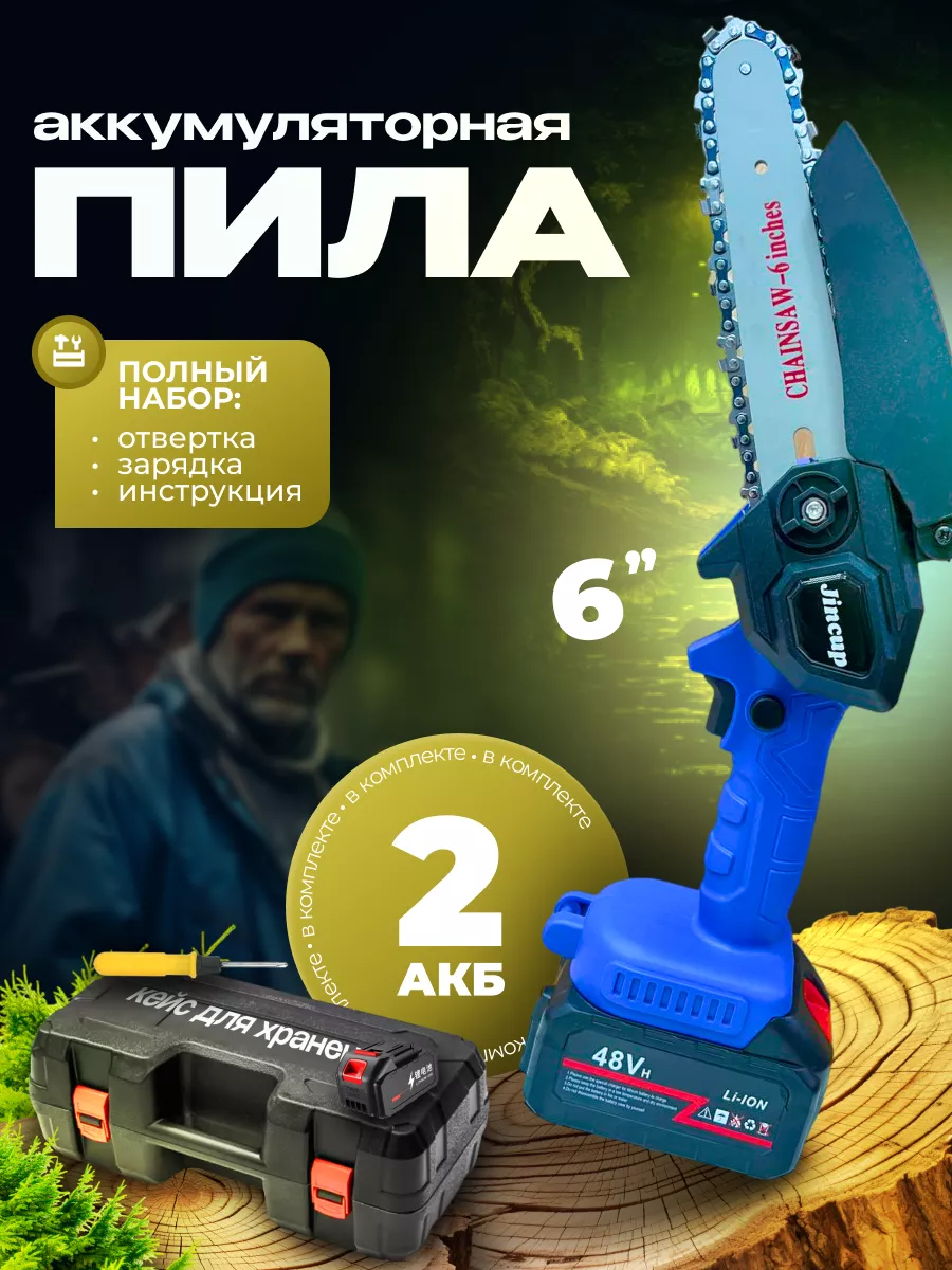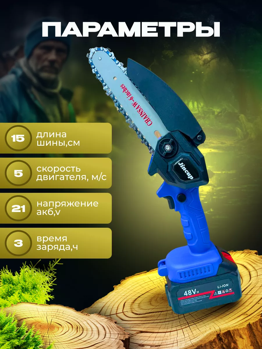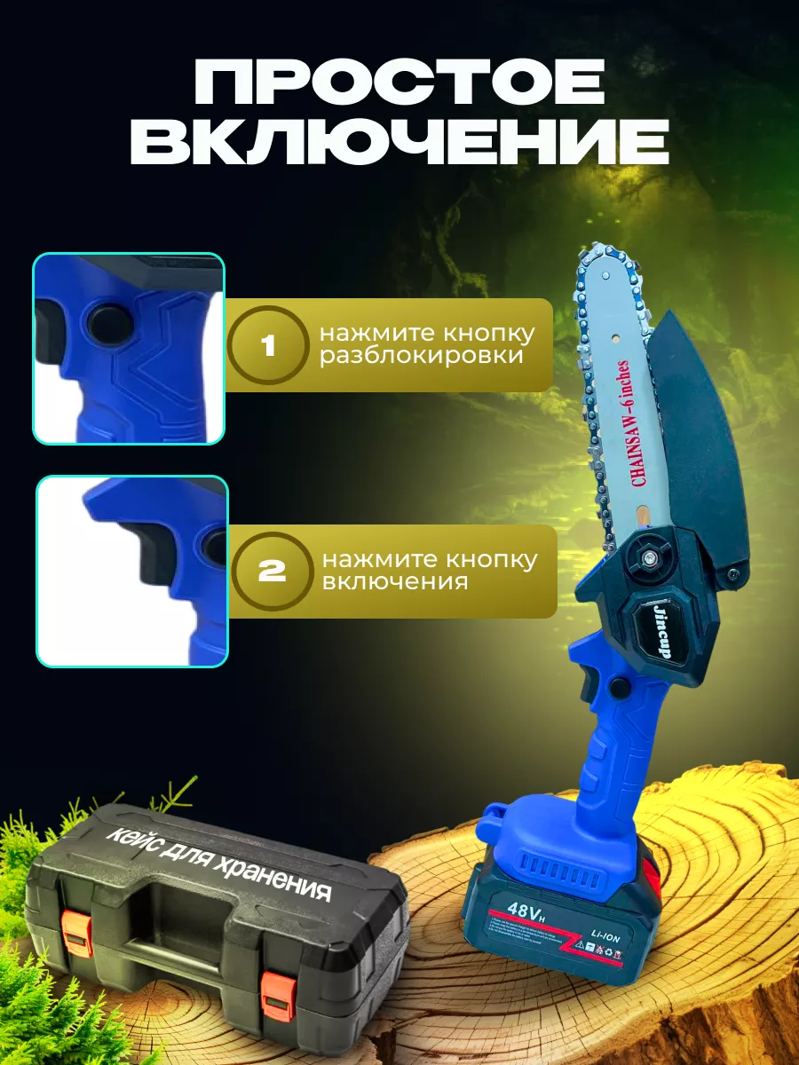 Садовая аккумуляторная цепная мини пила JINCUP, сучкорез, Цвет Синий интересное: