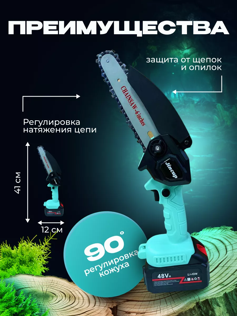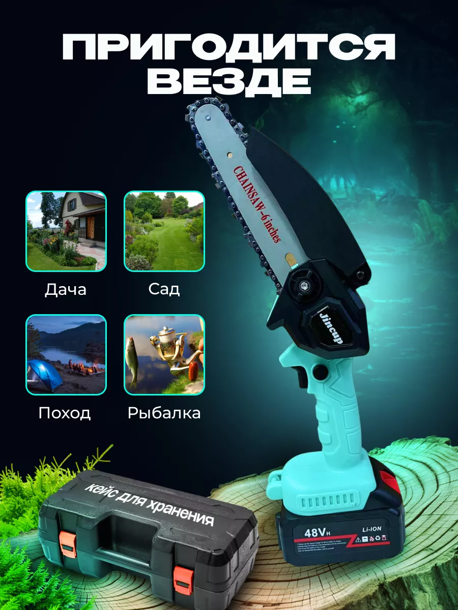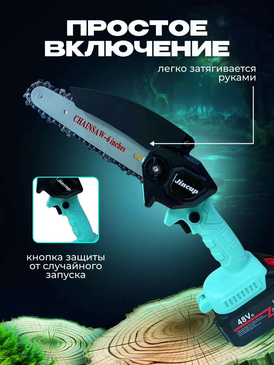 Садовая аккумуляторная цепная мини пила JINCUP, сучкорез, Цвет Голубой интересное: