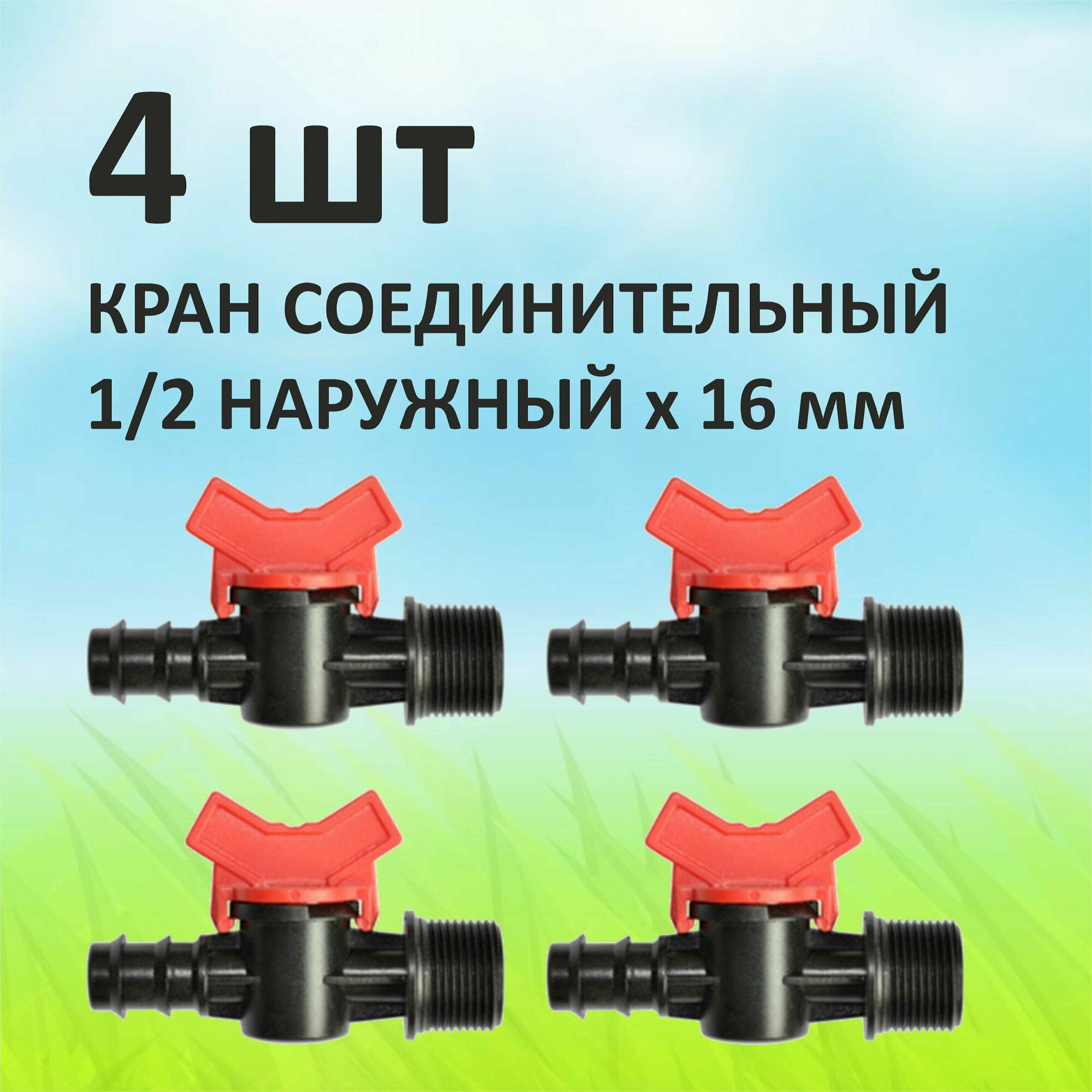 Кран стартовый для капельной трубки 16мм х 1/2" наружная - 4 штуки
