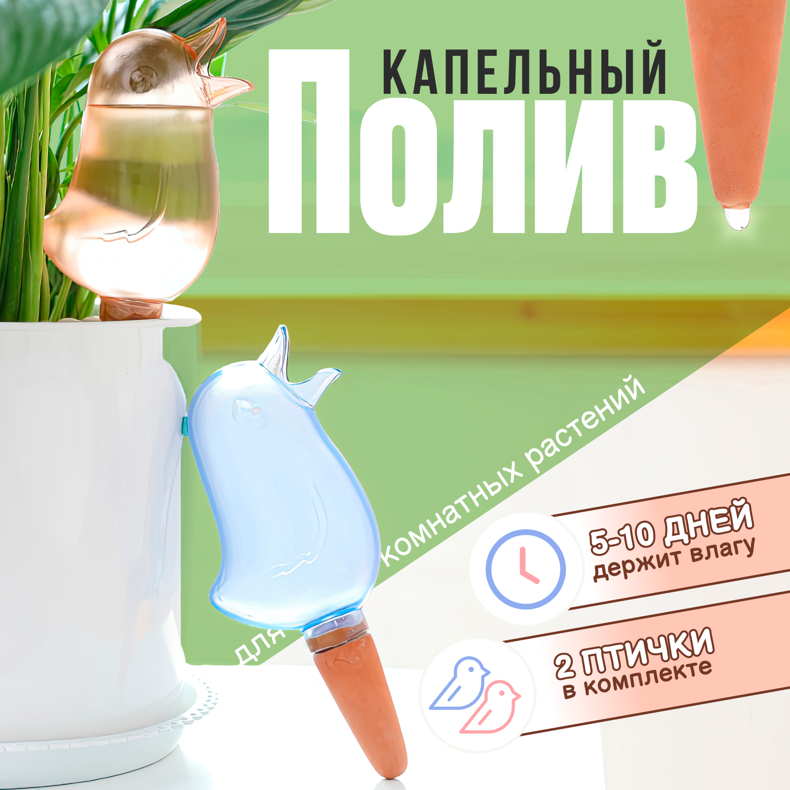 Автополив капельный для комнатных растений, аксессуар - украшение для дома, птички, 2 шт интересное: