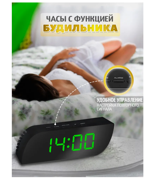Электронные настольные часы-будильник Космос с зелёный LED-дисплеем интересное: