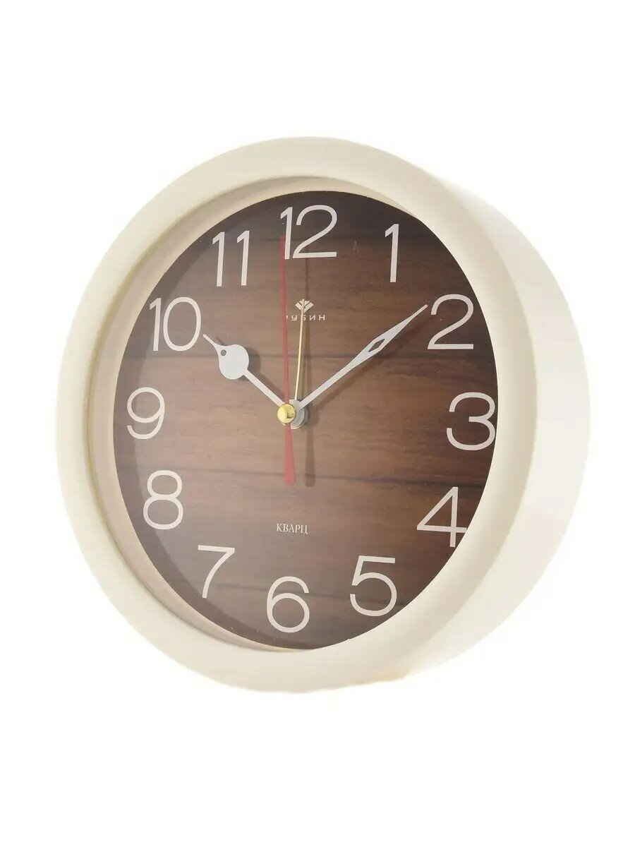 Будильник кварцевый Рубин d 15 см, корпус белый "Дерево" (В4-039)