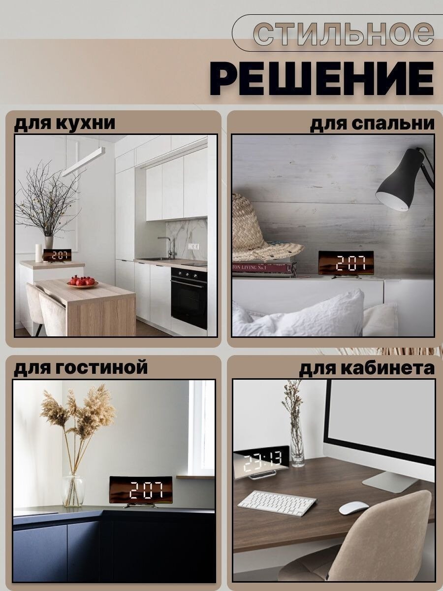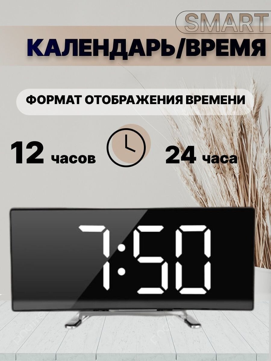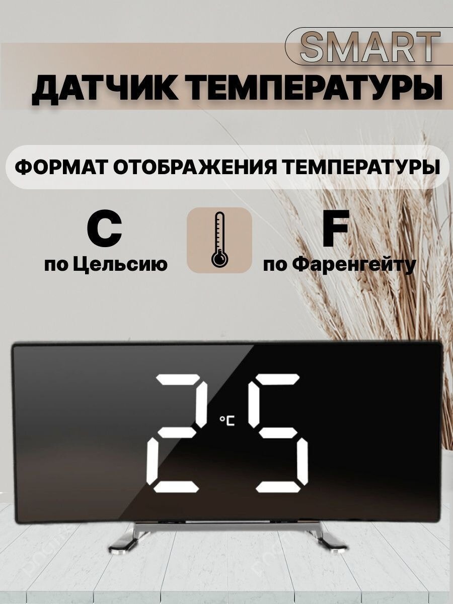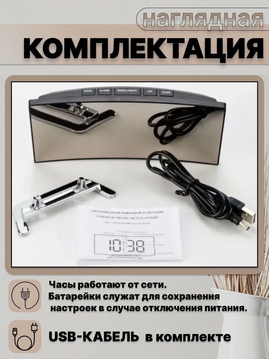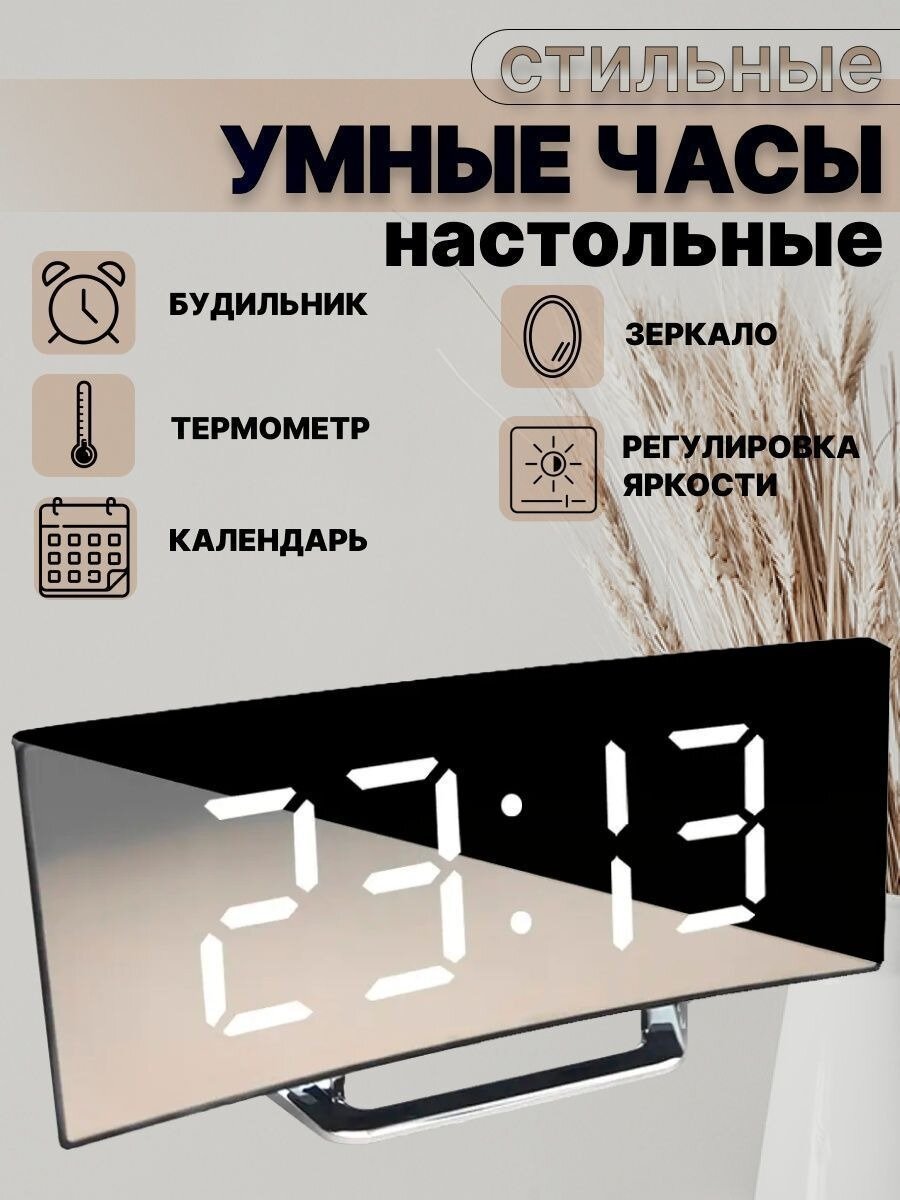 Часы электронные будильник с зеркальным табло / Цифровые часы настольные белые цифры / будильник / электронные часы интересное: