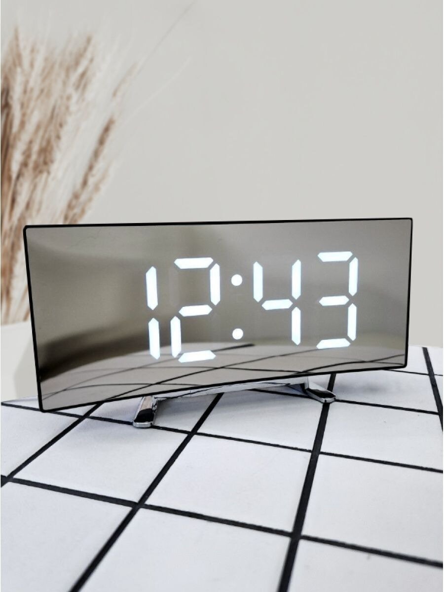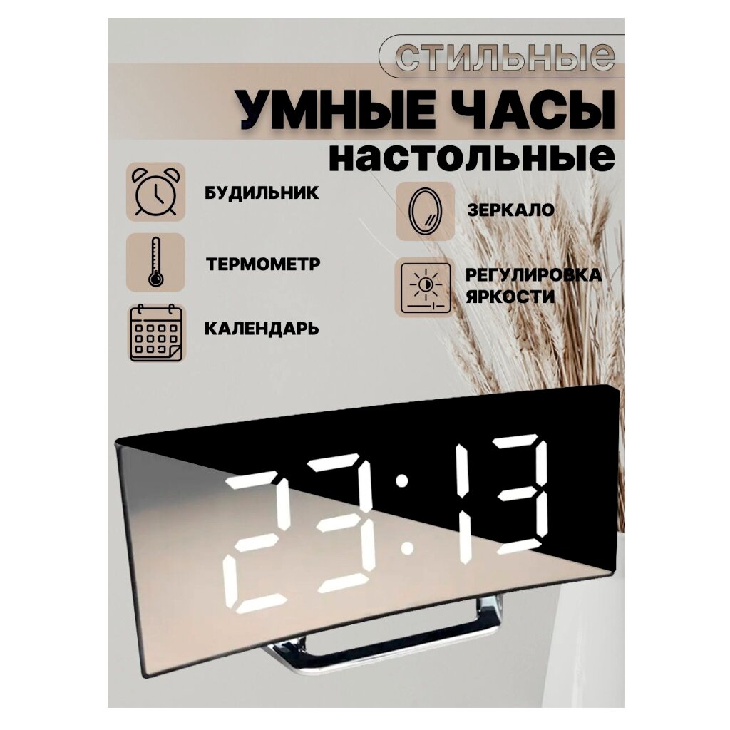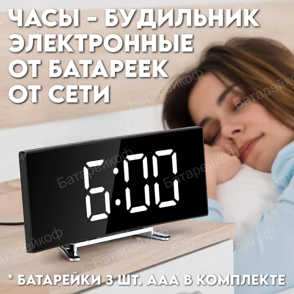 Часы электронные будильник с зеркальным табло / Цифровые часы настольные белые цифры / будильник / батарейки в комплекте интересное: